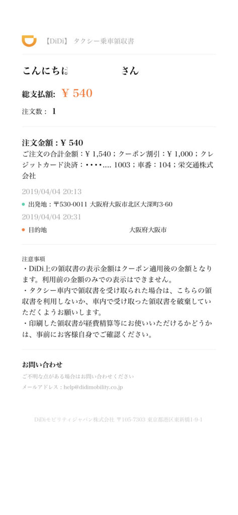 先ほどの利用方法でご紹介したように自動的にクーポンが利用され利用料金から差し引かれます。タクシーの運転手さんからこの乗客はクーポン利用ということはわからないようになっています!実質無料で乗っていることもばれませんのでご安心を(笑)
