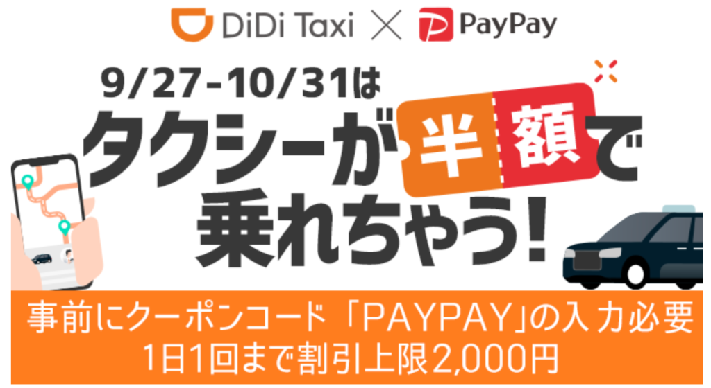 - 5.3 PayPayならDiDiのタクシーが半額で乗れちゃうキャンペーン!(終了)