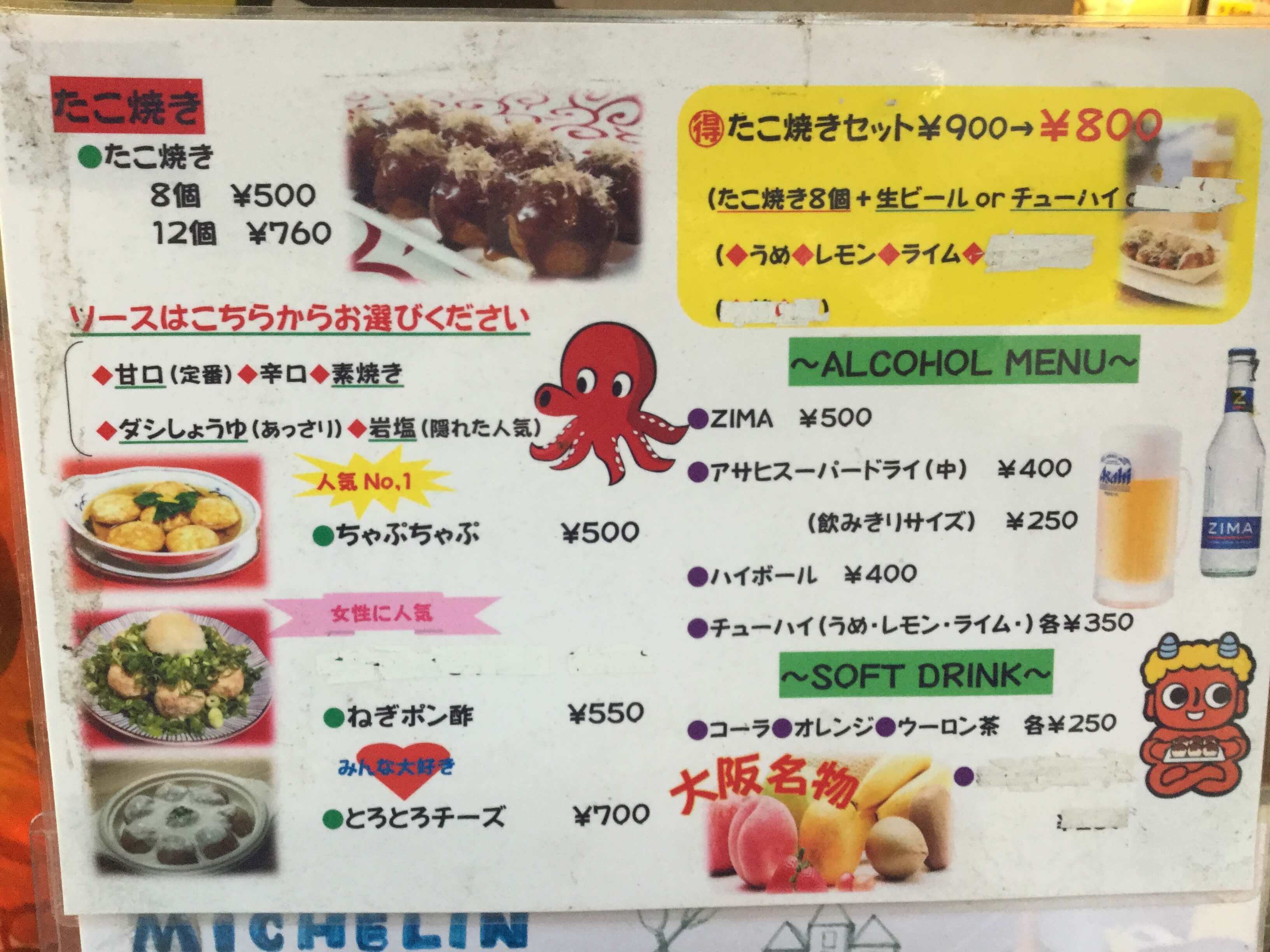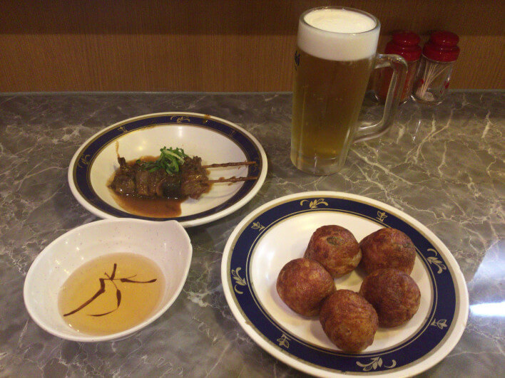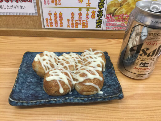 居酒屋メニューもたくさんあり安いチョイ飲みのお店というイメージがあるかもしれませんが意外とビールは高いです…ちなみにたこ焼きの他にはどて焼きも名物なので是非一緒にどうぞ!