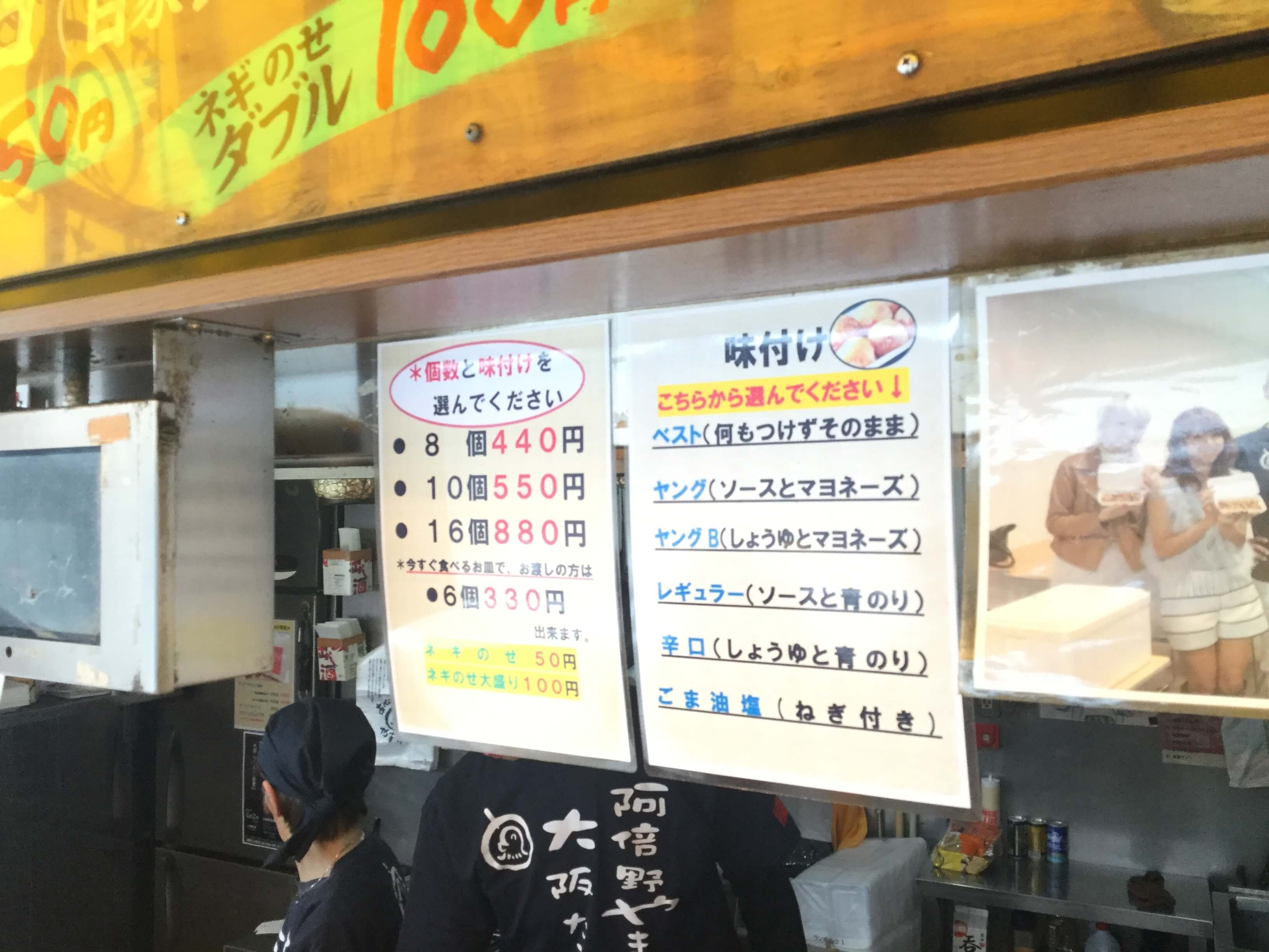 そして穴場は天王寺駅を挟んだ北側の谷町筋(四天王寺参道)沿いにある北口店です。こちらはあまり行列ができているのを見たことがありません。店先にテーブルがあり数人なら座って食べられます。