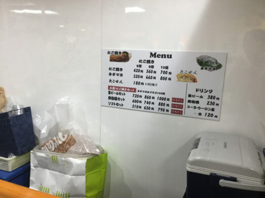 メニューは以下の通りです(写真はリニューアル前の仮店舗の時のものですが値段は変わっていません)