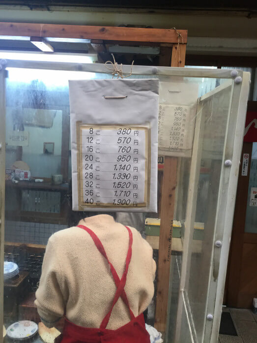繁華街から外れた場所、少し小さめということを差し置いても安いです!昔ながらのお値段で嬉しくなります。100個買うなら27.5円と驚異的な単価を叩き出しました(2750円/100個)。
