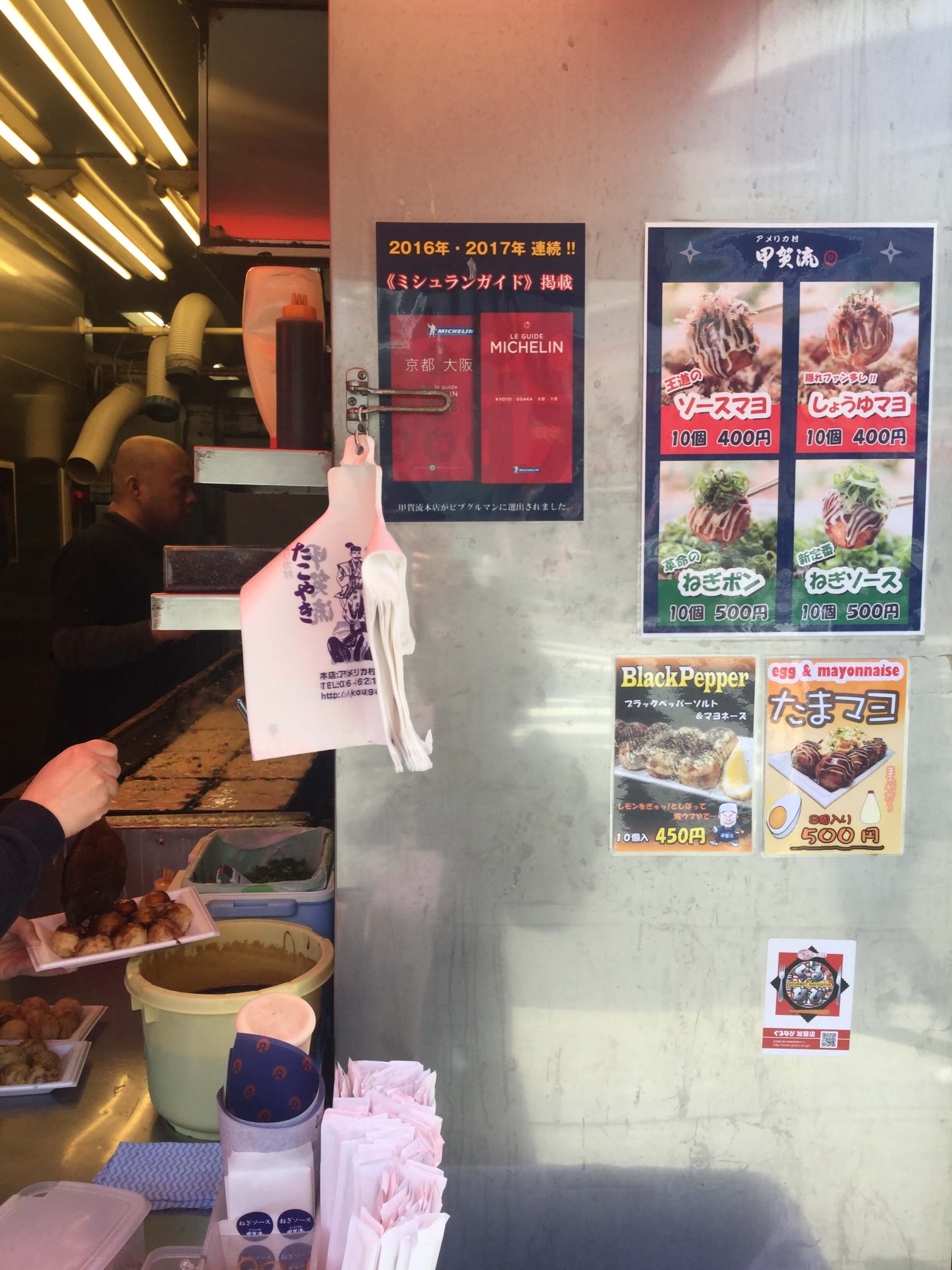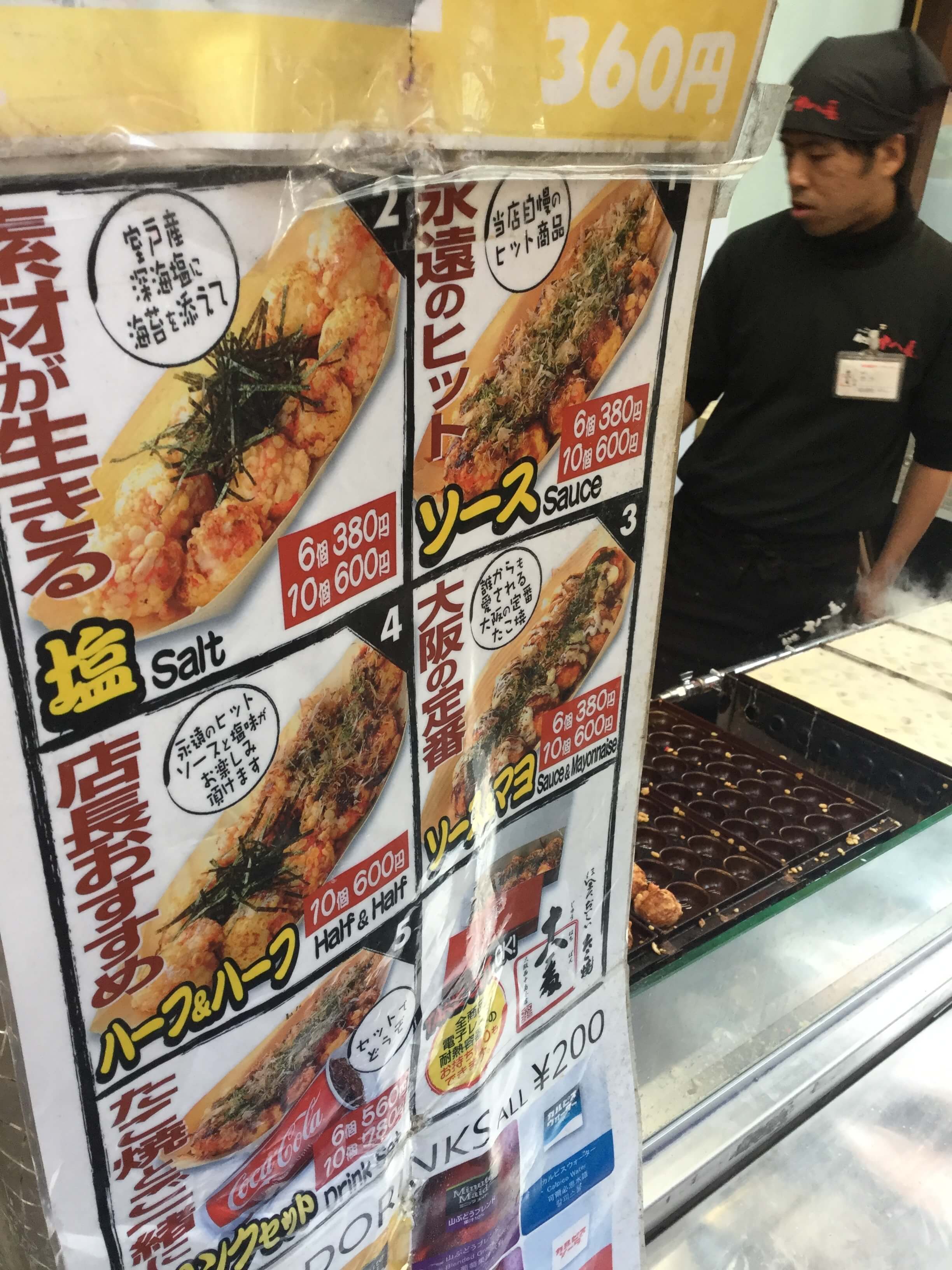 まぁ何と言っても行列はほとんど外国人、看板も英語、韓国語、中国語、店員さんも中国系の方とまるで海外にいるような感じです(笑)。日本人は僕くらいで店員さんに中国語で話しかけられる始末…ミナミのたこ焼き屋さんの中でも外国人比率は一番ではないでしょうか(笑)
