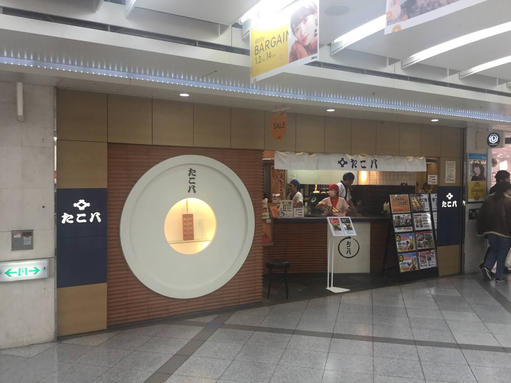 本店は道頓堀にあるようですが、こちらの方がメジャーだと思われます。大阪メトロ御堂筋線梅田駅や谷町線東梅田駅周辺から東は泉の広場、北は阪急三番街あたりまで広がる巨大地下街「ホワイティ梅田」にあります。僕が子供の頃は「ウメチカ」と呼ばれていました。「たこ八」は泉の広場に向かうイーストモールにあります。