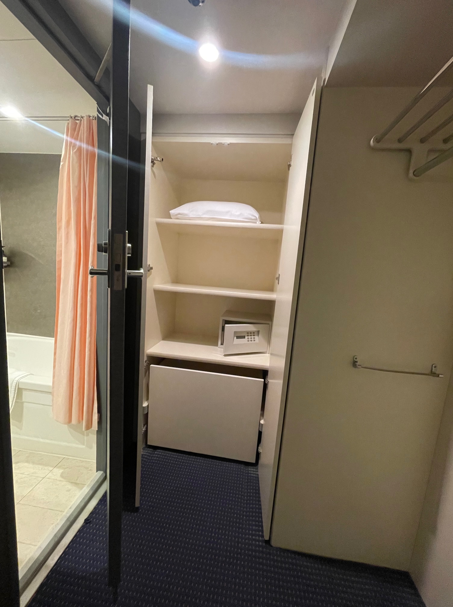 正面は棚になっておりセーフティボックスもあります。左側の扉は…