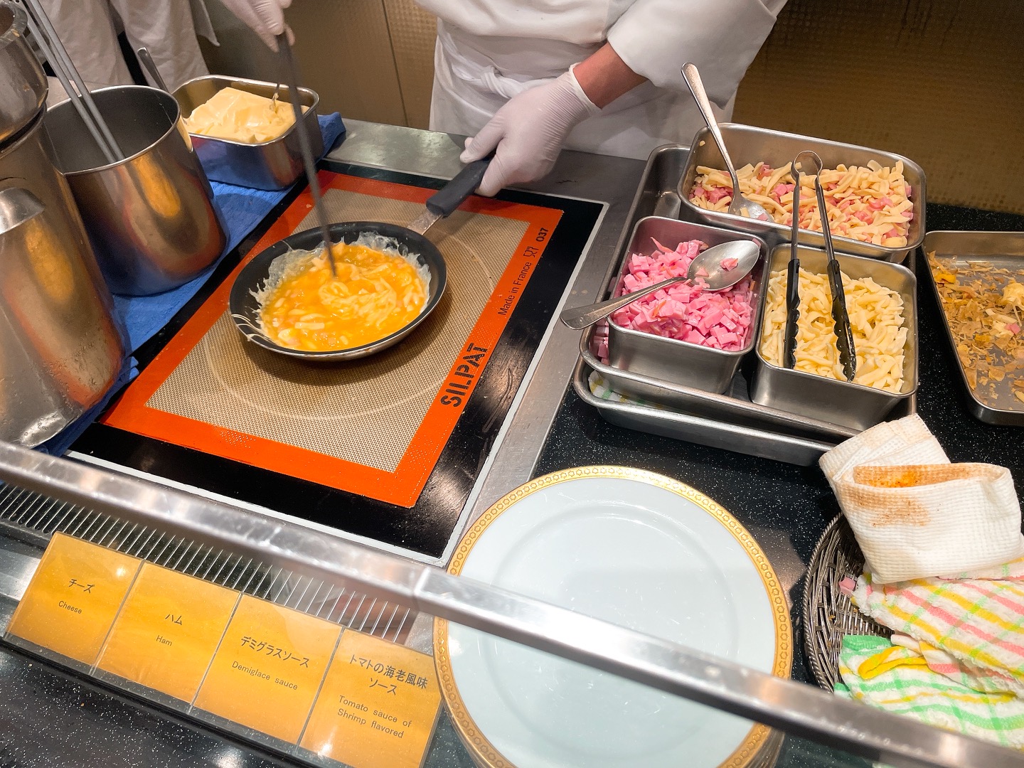 シェフが作ってくれるオムレツは時間によってはかなり並びました