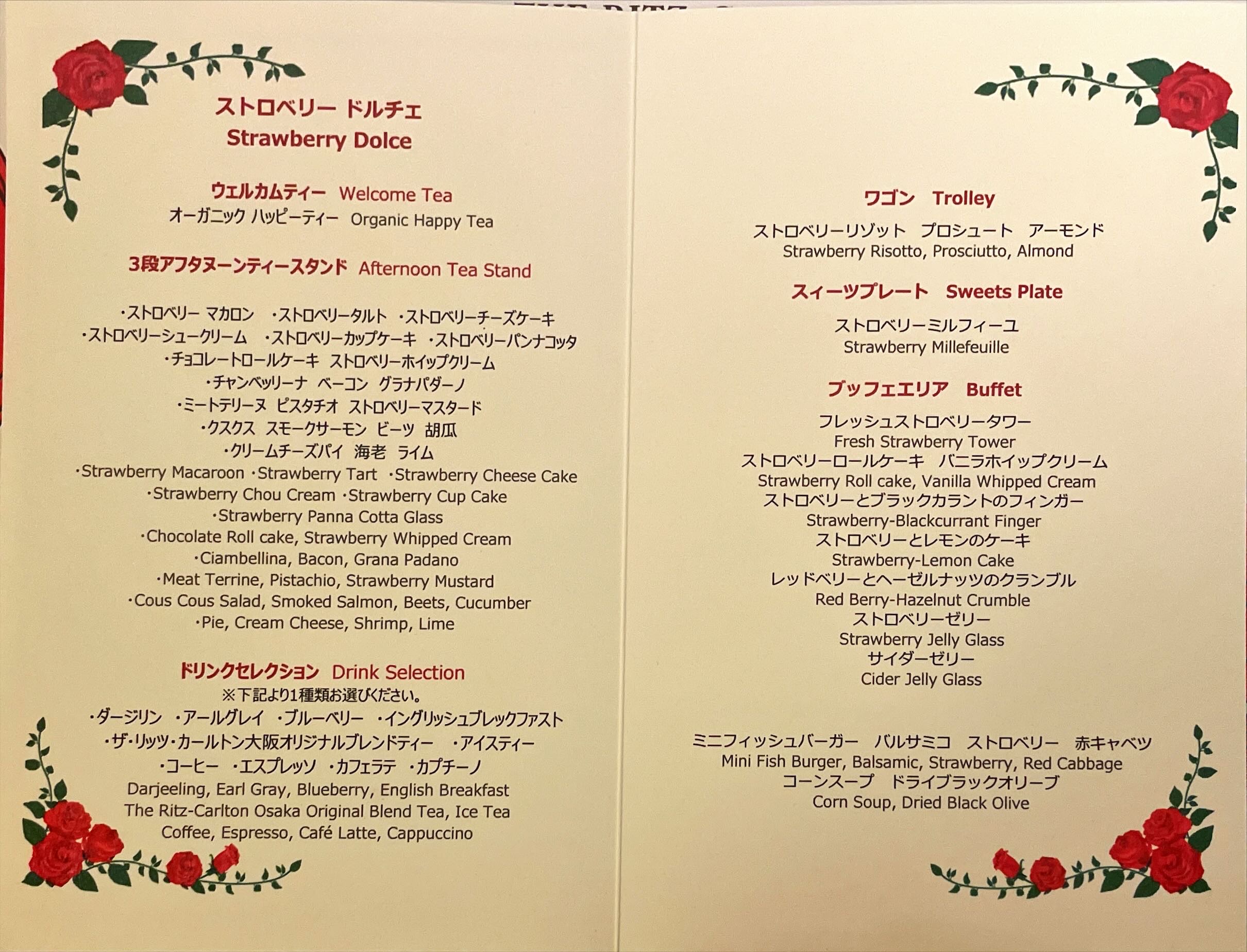 2021-2022年リッツカールトン大阪いちごビュッフェ「ストロベリードルチェ」メニューを詳細にご紹介!