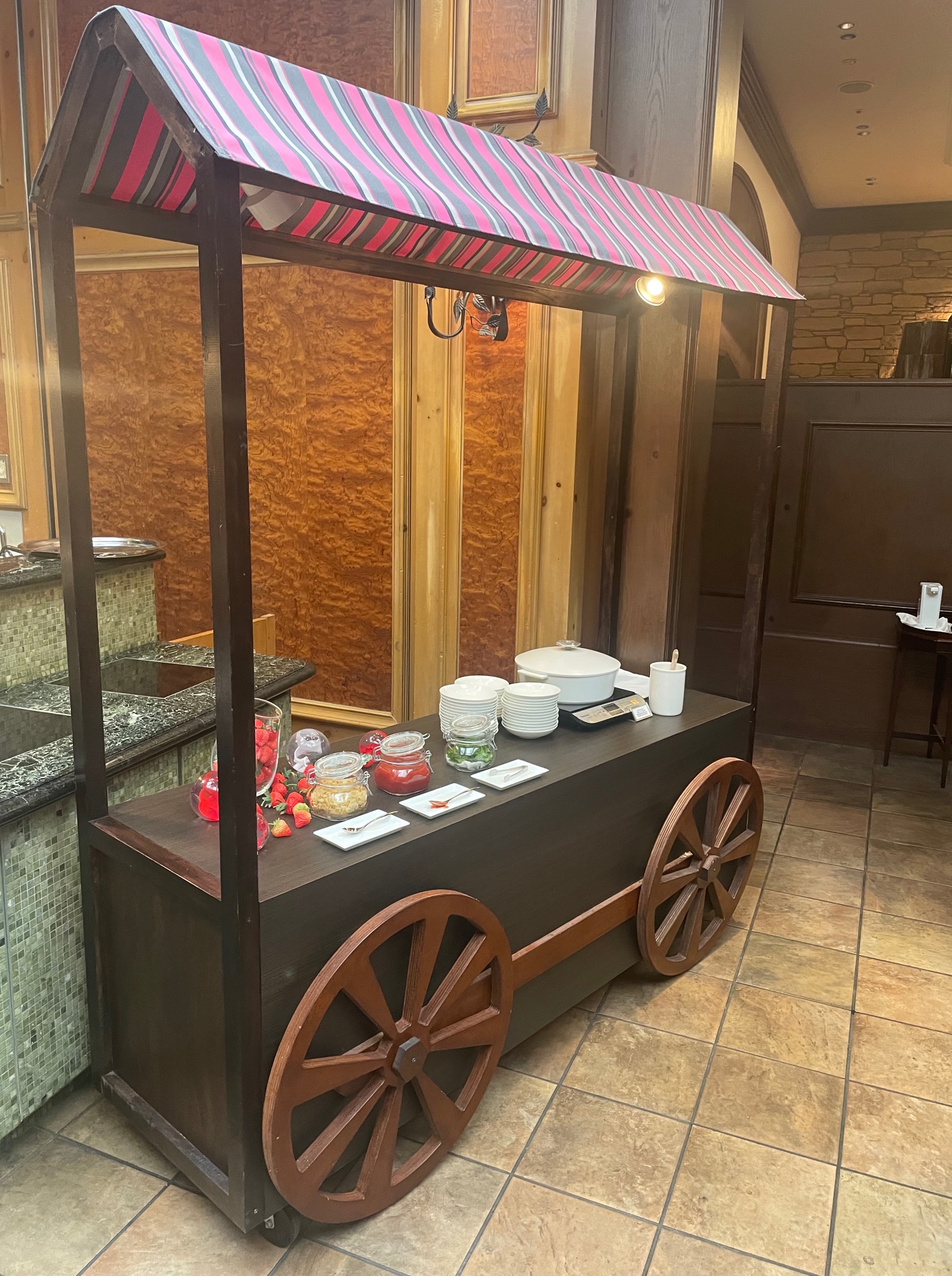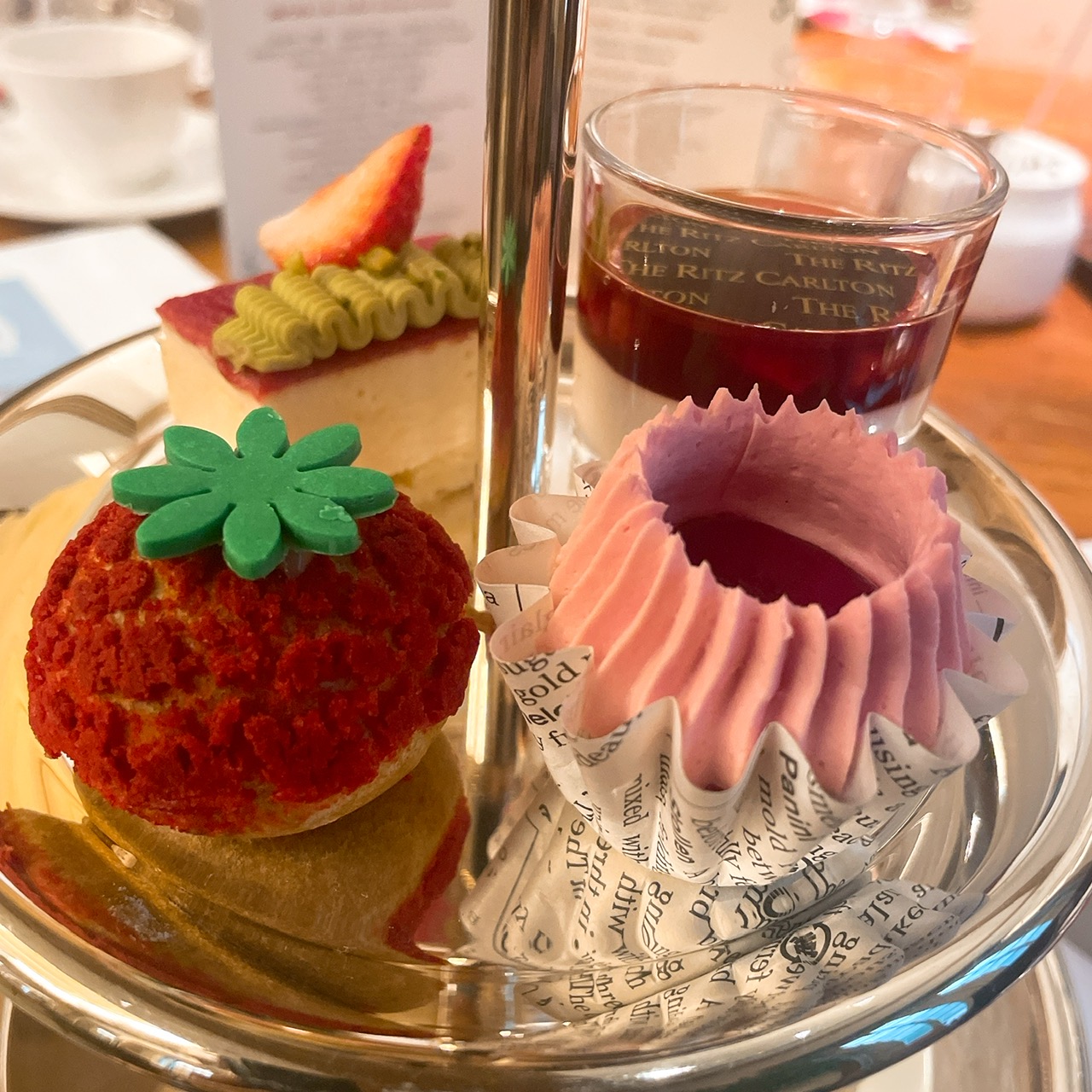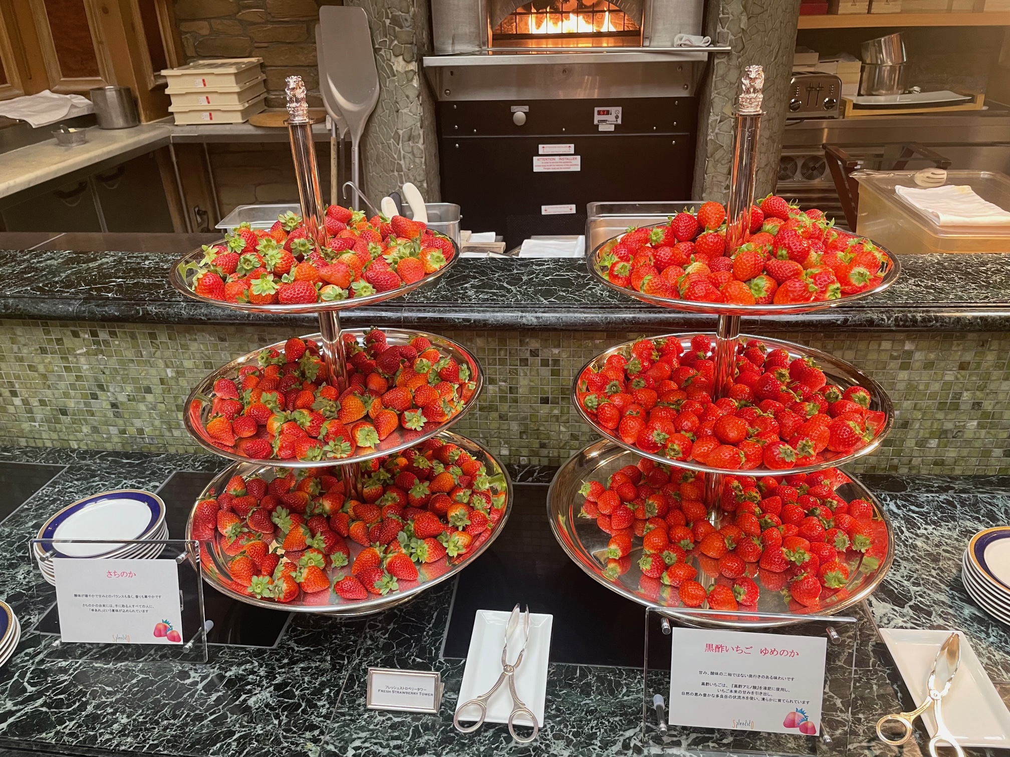 今年のリッツカールトン大阪いちごブッフェは昨年に引き続き新型コロナウイルスの影響はやはり残っており、時間差でお客さんを入れている、一部はアフタヌーンティースタンドで提供される、ブッフェのメニュー数を絞っていると一昨年までとは違う様式です。