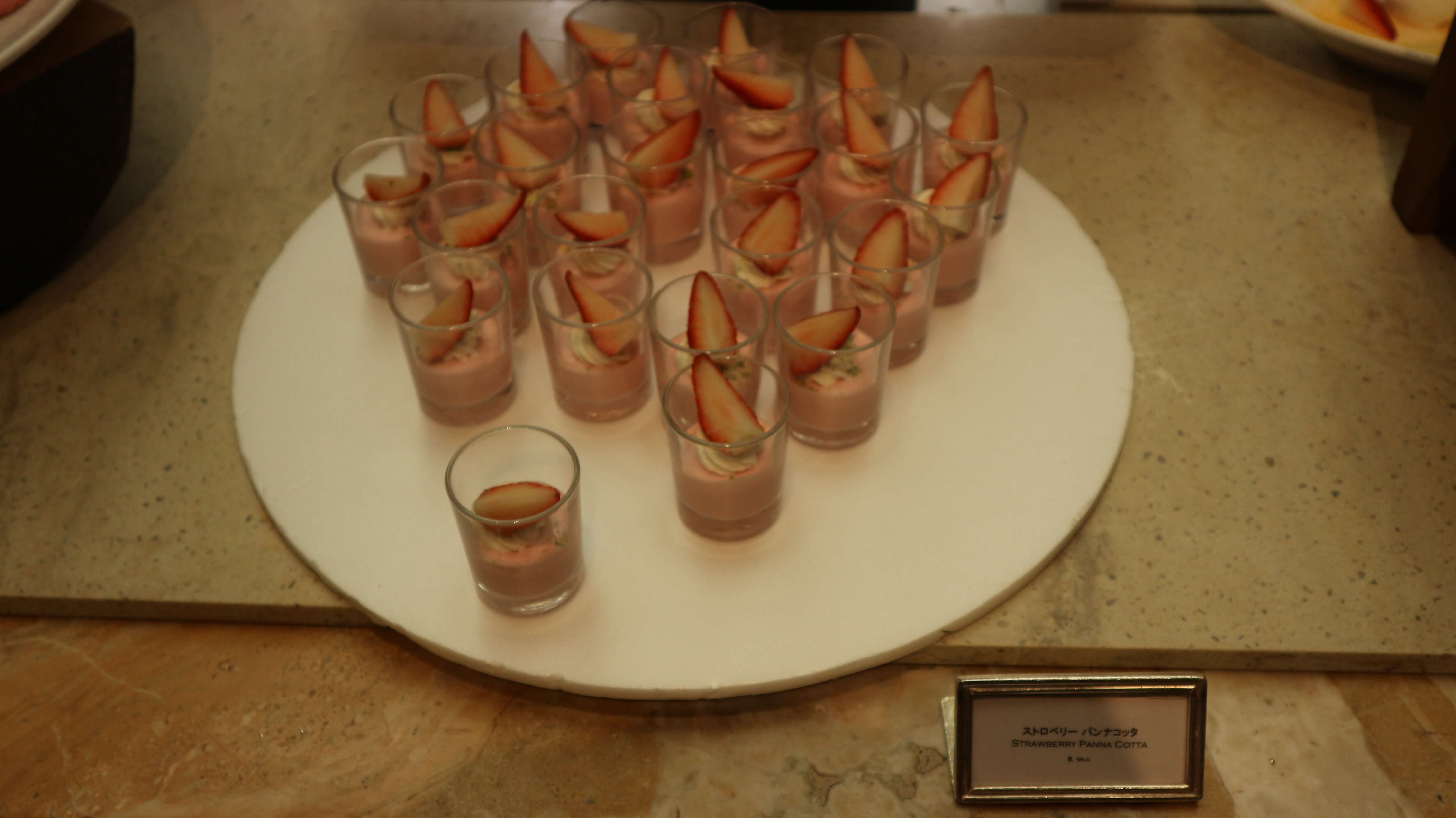 パンナコッタやゼリーなどガラス容器に入ったスイーツもたくさんあります。オレンジのゼリーは人気でほとんど残っていませんでした