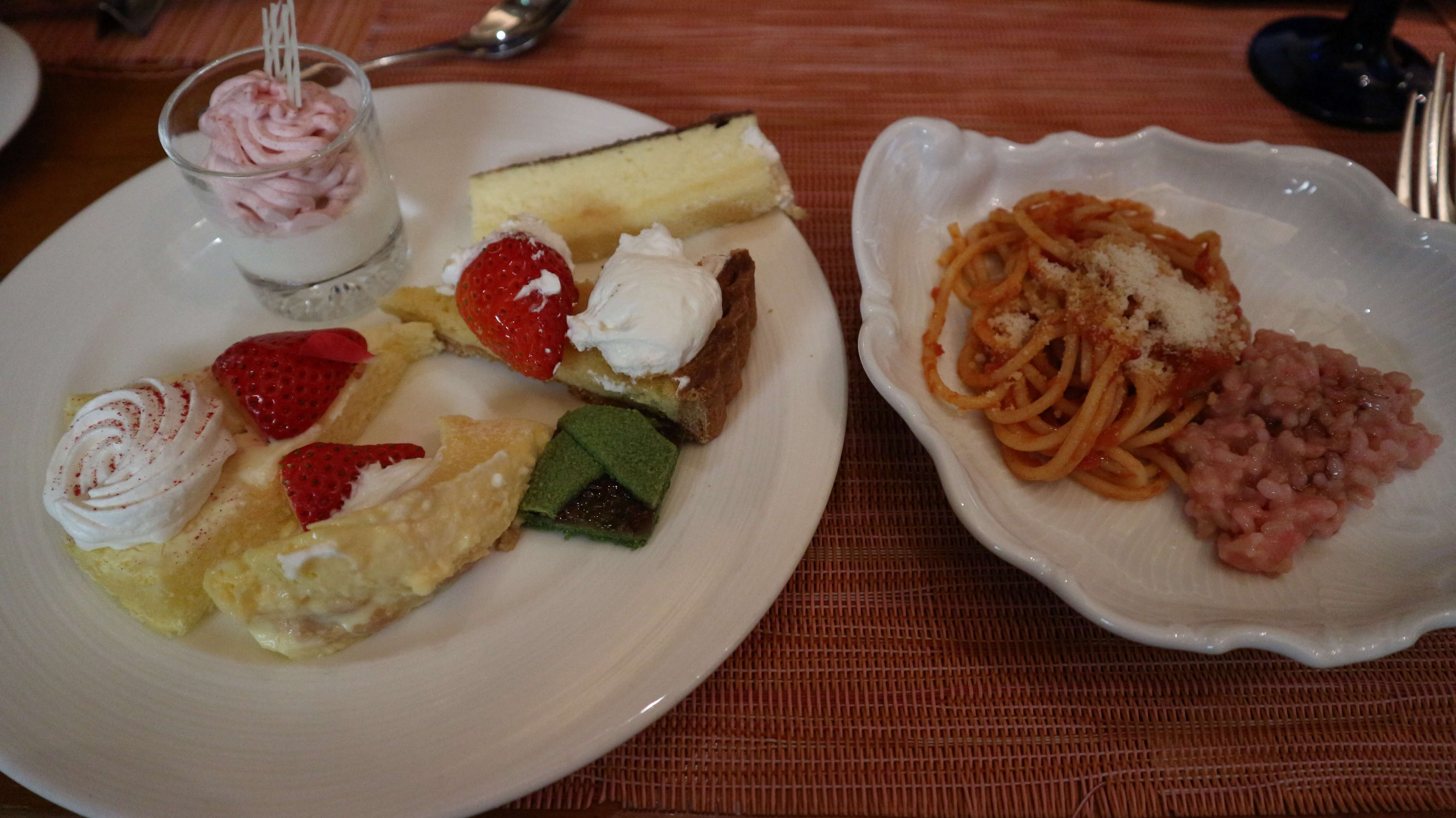 ピザとパスタとリゾットはさすがイタリアンのお店だけあってとても美味しかったです。甘いものを食べて、これらを食べて口の中をリセットして、また甘いものに戻るというサイクルを繰り返していました(笑)