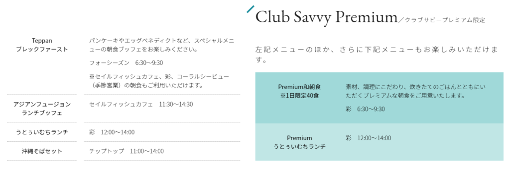 Club Savvy PremiumとClub Savvyの違いが気になりますが、特典の違いは以下の通りです。