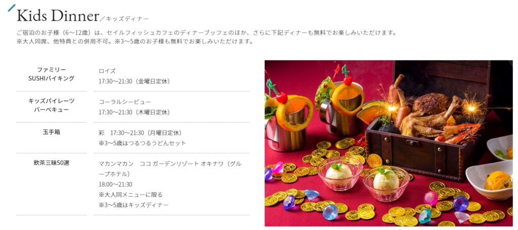 ちなみにセイルフィッシュカフェのディナーブッフェはクラブサビー対象でなくても3~12歳の子供は無料なのですが、ディナーブッフェの内容につきましては以下の記事をご参照ください!