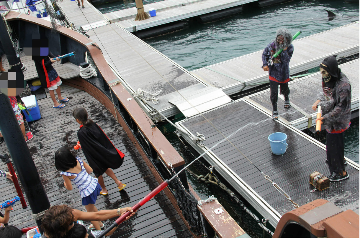 子連れの方に個人的にお勧めするのはトレジャーハンティング!ホテルの敷地内を回って、謎解きやゲームをした後に海賊船に乗り込んで海賊と戦うアトラクションです。午前の部は地上での探検(謎解きやゲーム)+海上での海賊との戦い、午後の部は海上での海賊との戦いのみとなっています。