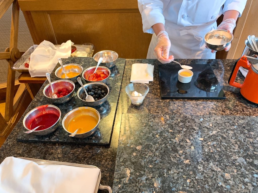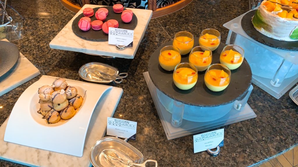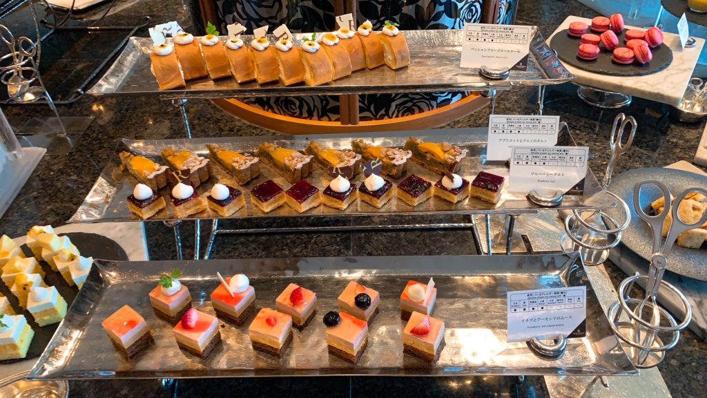 ブッフェ台には20種以上のフルーツたっぷりな華やかな季節のスイーツが並んでいてどれを取ろうか迷います。