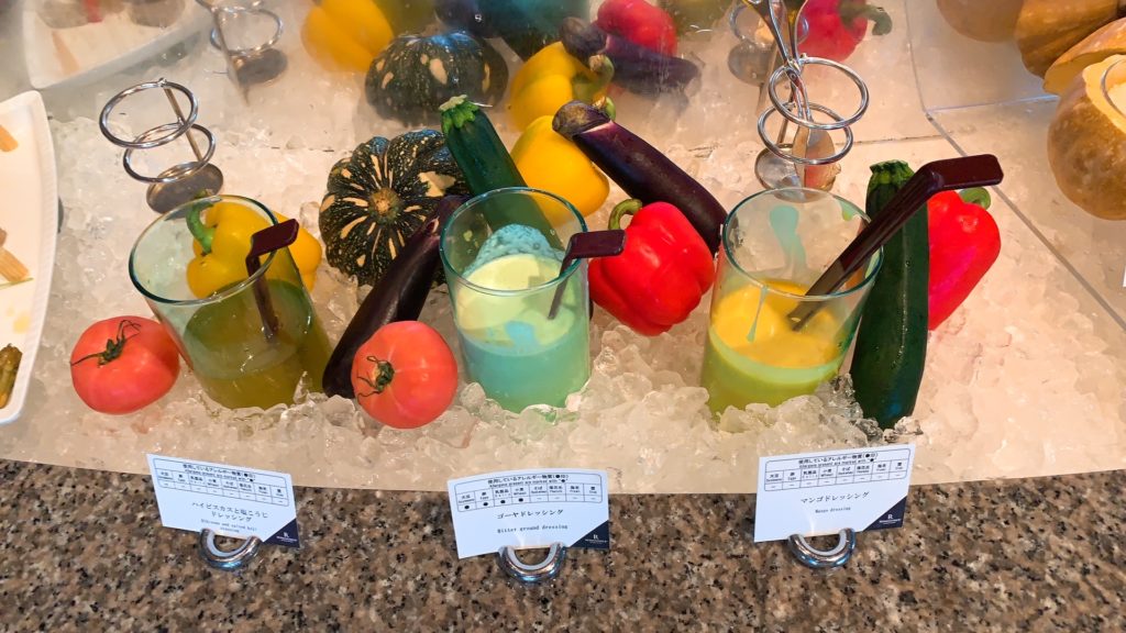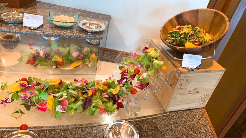 ブッフェ台にはサラダや前菜が並んでいます。もちろんこちらも食べ放題となります。サラダは盛り付けがキレイで最初に取るのはもったいない気がしました(笑)