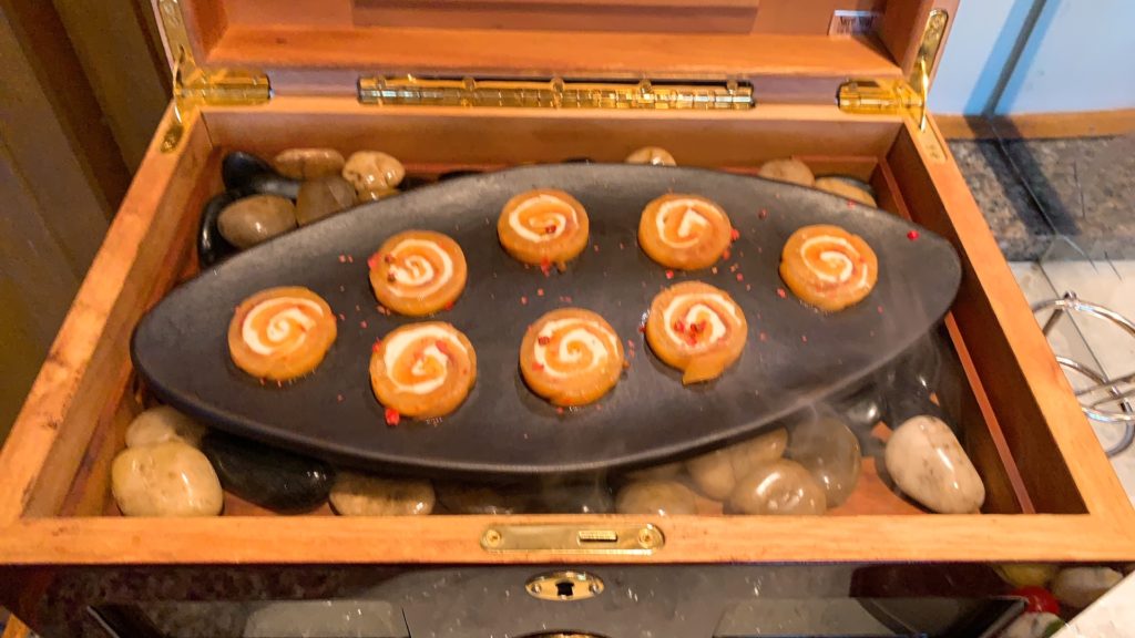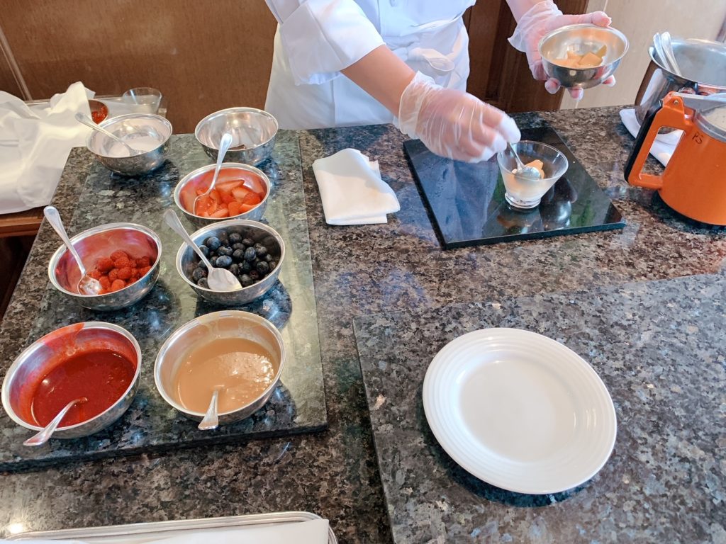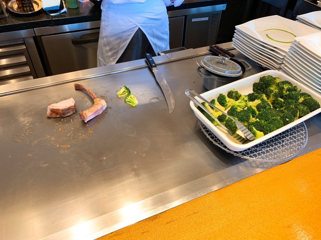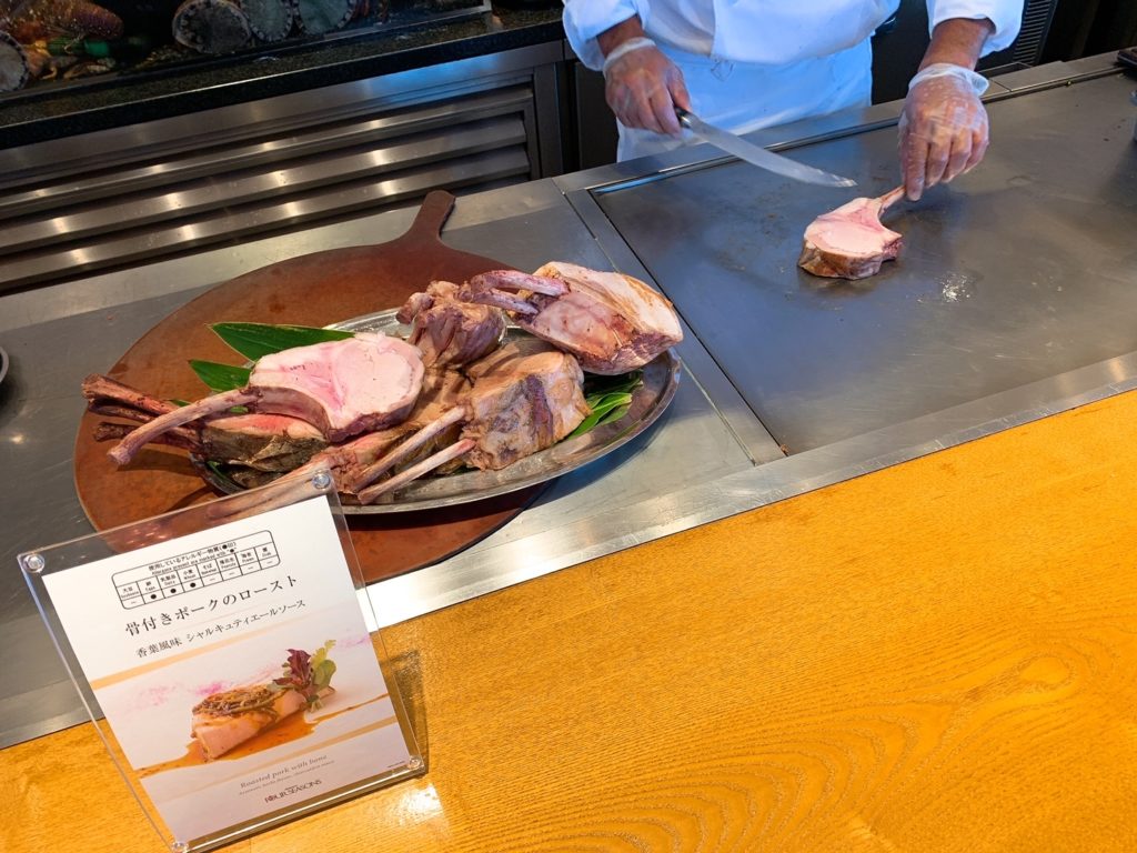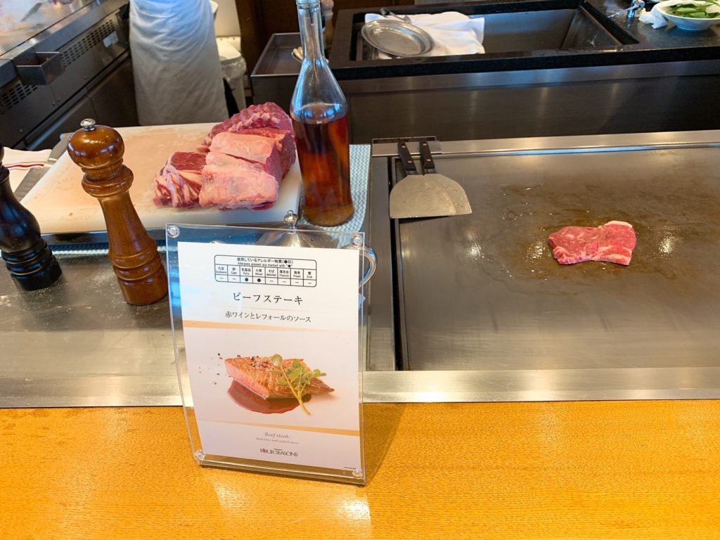 メインディッシュは、店内の鉄板コーナーでシェフがオーダーごとに作り、好きなだけ食べることができます!こういうブッフェはメインメニューは選択制で前菜やデザートは食べ放題というスタイルを見かけることが多いように思いますがメインディッシュも食べ放題というのは贅沢です。