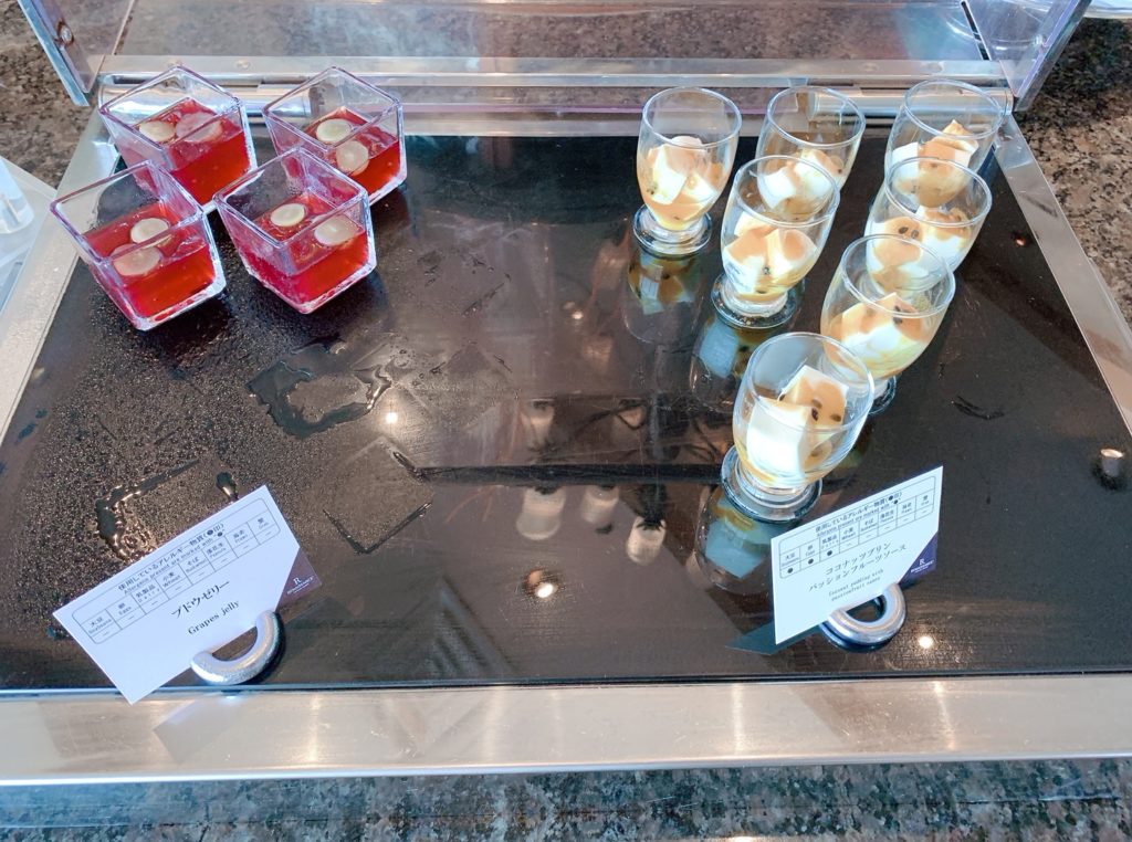 ブドウゼリー、ココナッツプリンパッションフルーツソース