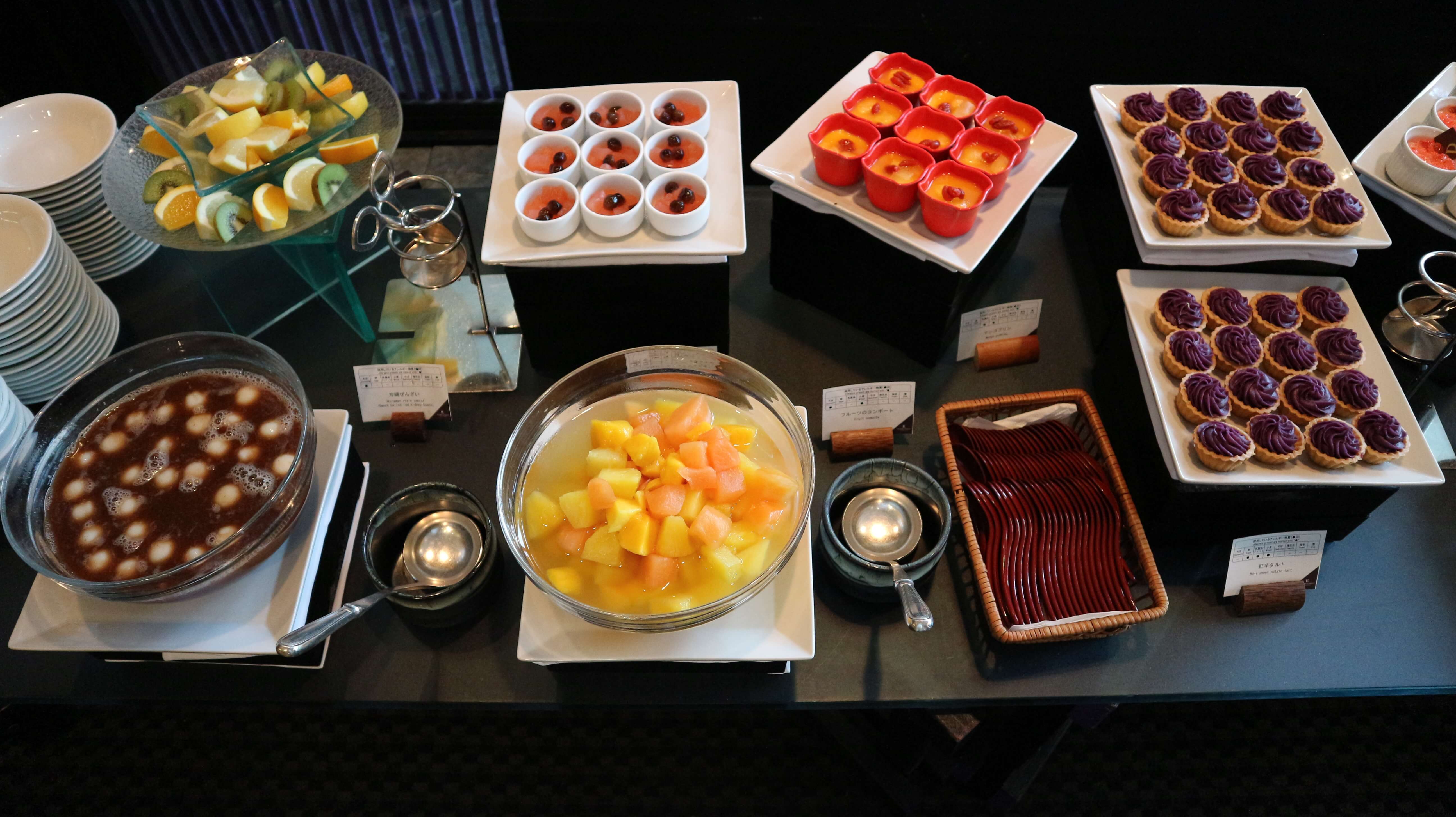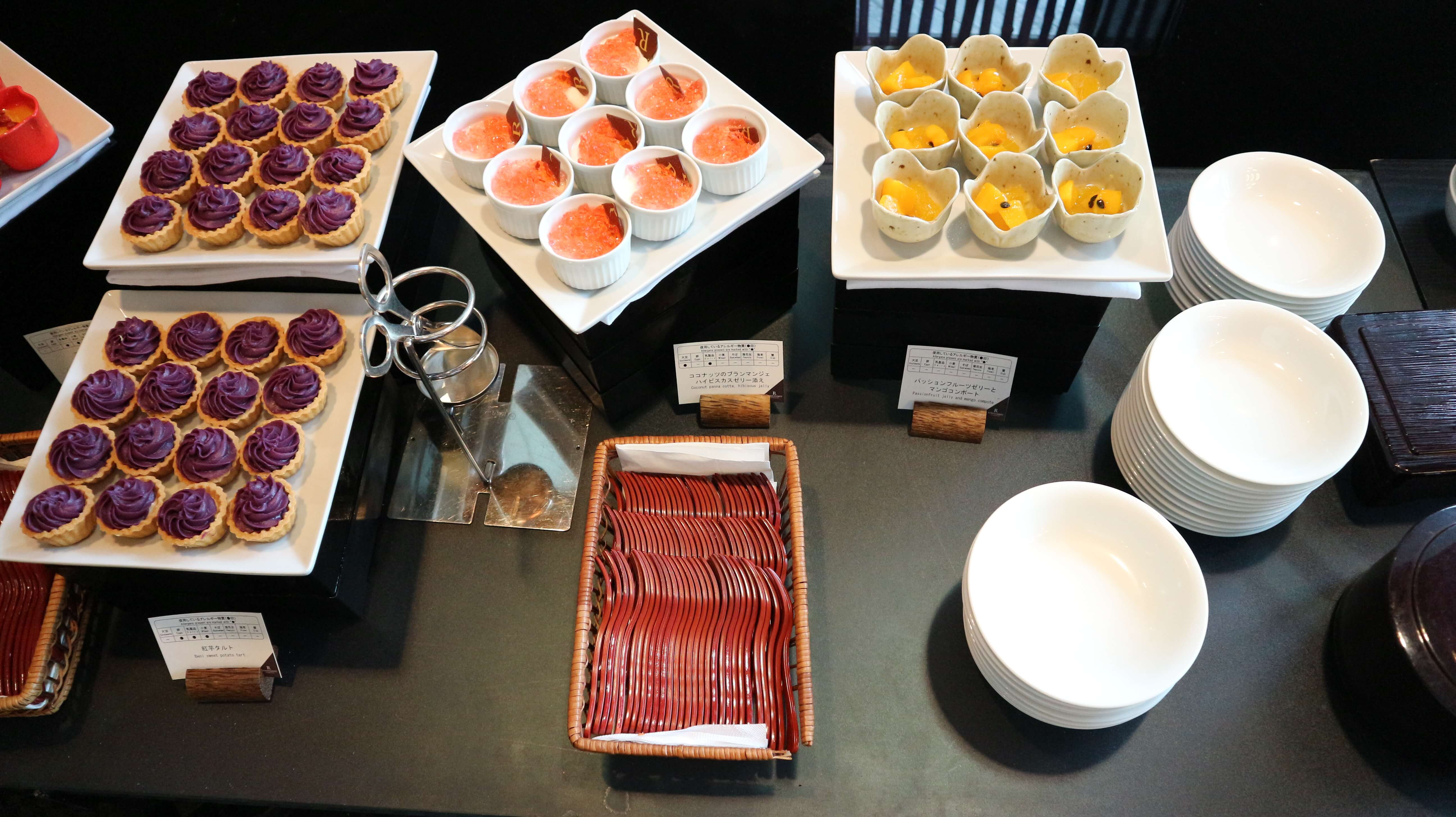 紅芋タルト、沖縄ぜんざい、マンゴープリン、フルーツコンポート、季節のフルーツなど