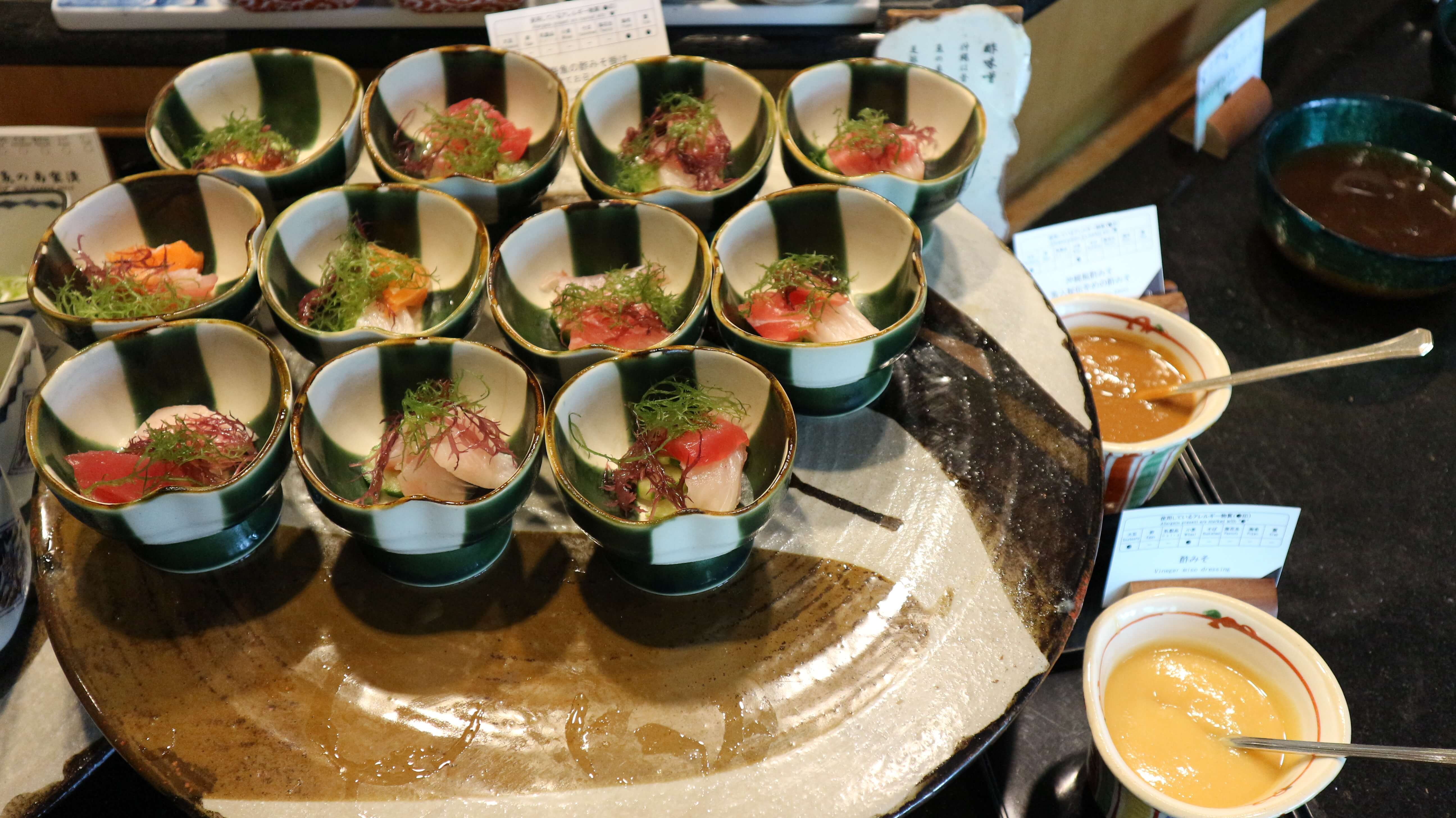 サーモン、タコ、シルユー(シロダイ)、カンパチ、ホタテ