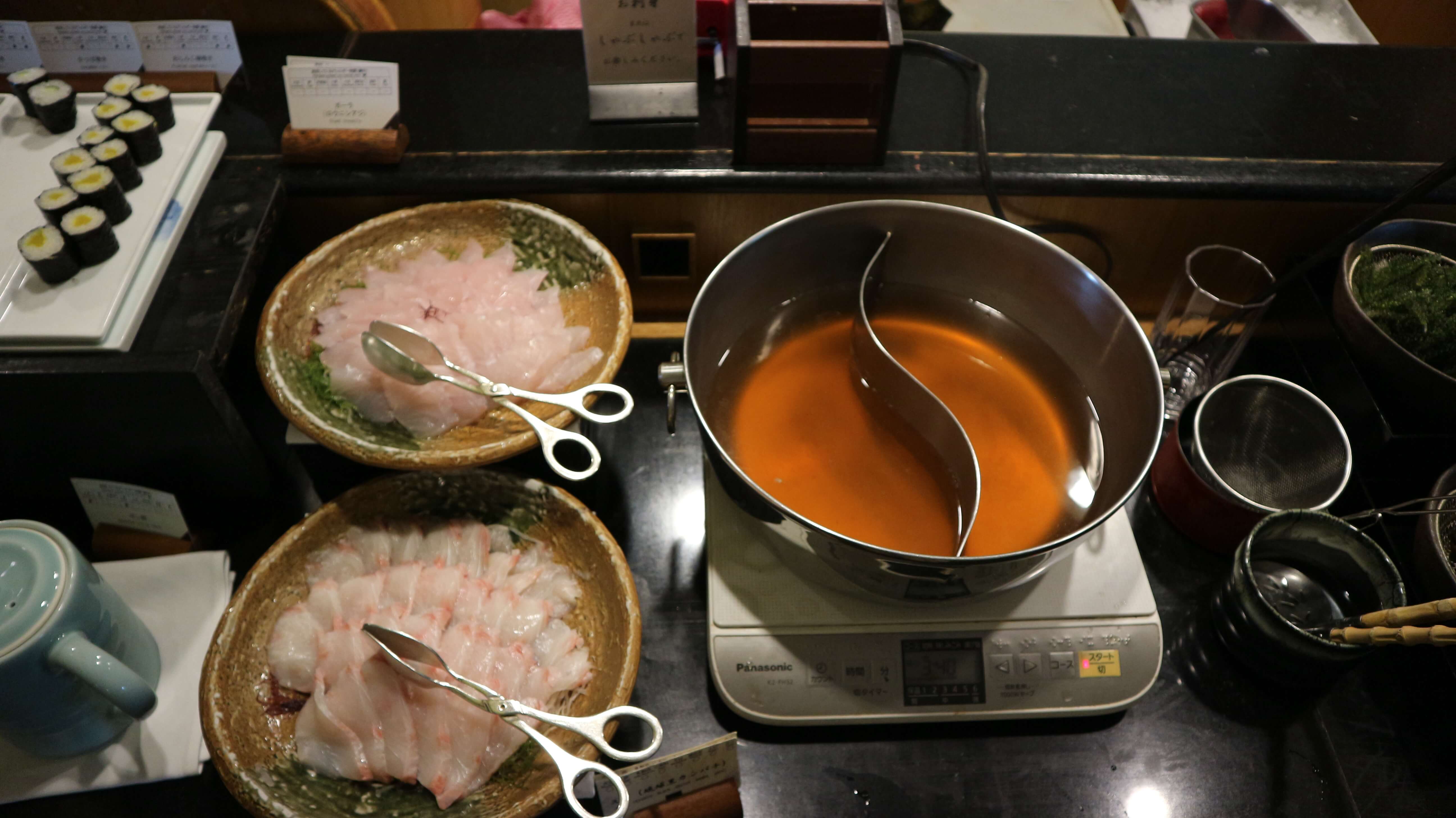 お刺身や海ぶどう、もずくをロイズ特製お出汁のしゃぶしゃぶで頂けます