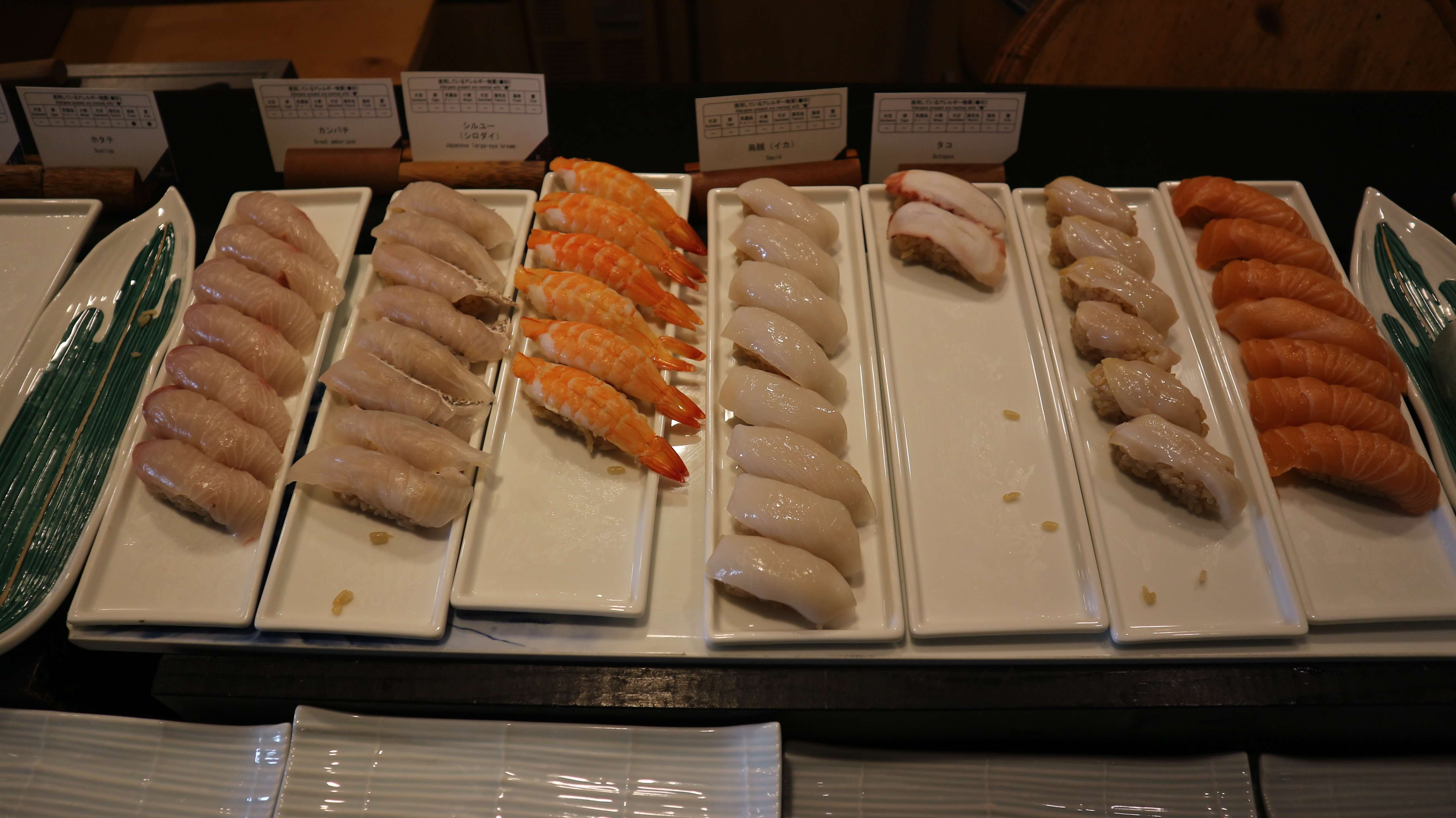 何と言ってもこちらのレストランはお寿司の食べ放題である「ファミリーSUSHIバイキング」が人気です。開店前から行列が出来ており、僕はギリギリで1巡目最後から2組目でした…