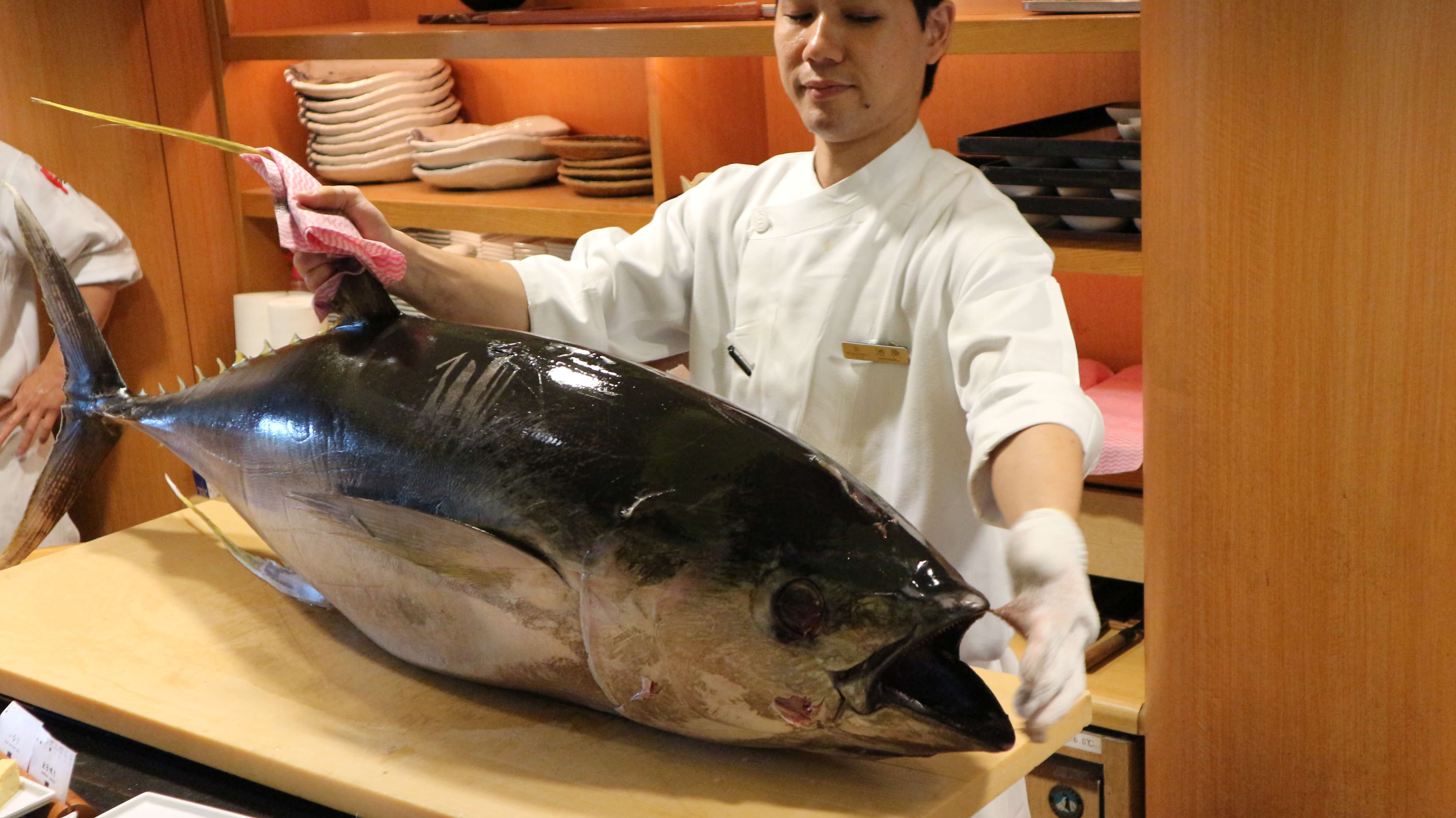 この日は30㎏オーバーの近海で獲れたキハダマグロをまるごと解体されていました!