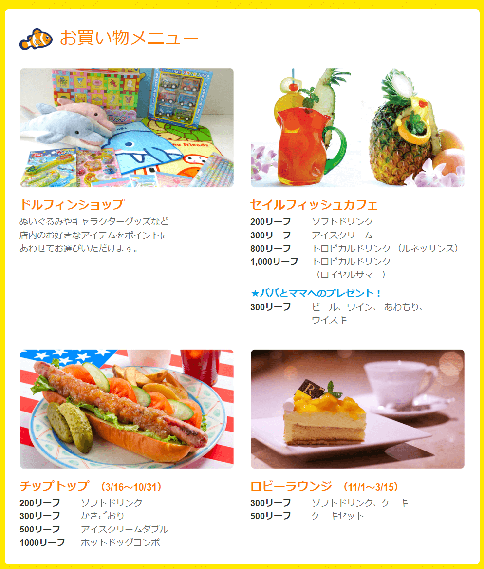 6〜12歳の子供はセイルフィッシュカフェのみがディナー無料となります。