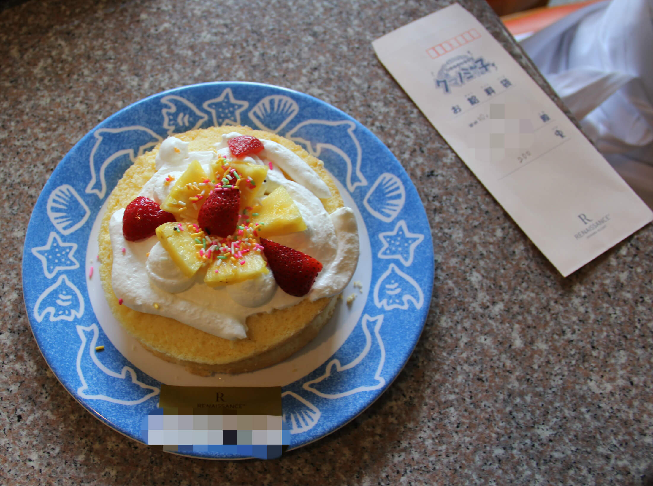 出来上がったケーキはセイルフィッシュカフェで家族みんなで美味しく頂きました!200リーフが入った給料袋が一緒に渡されます。