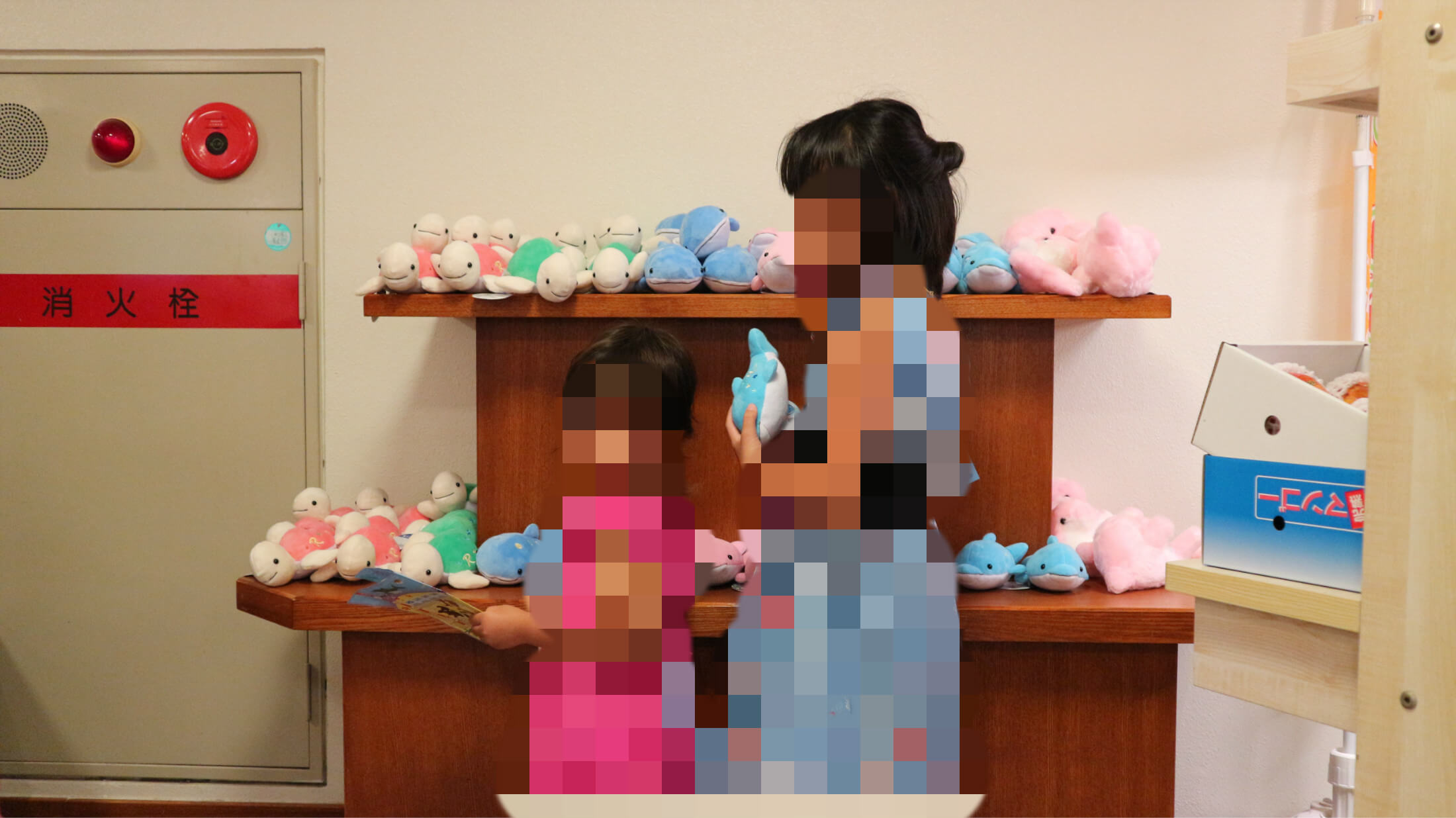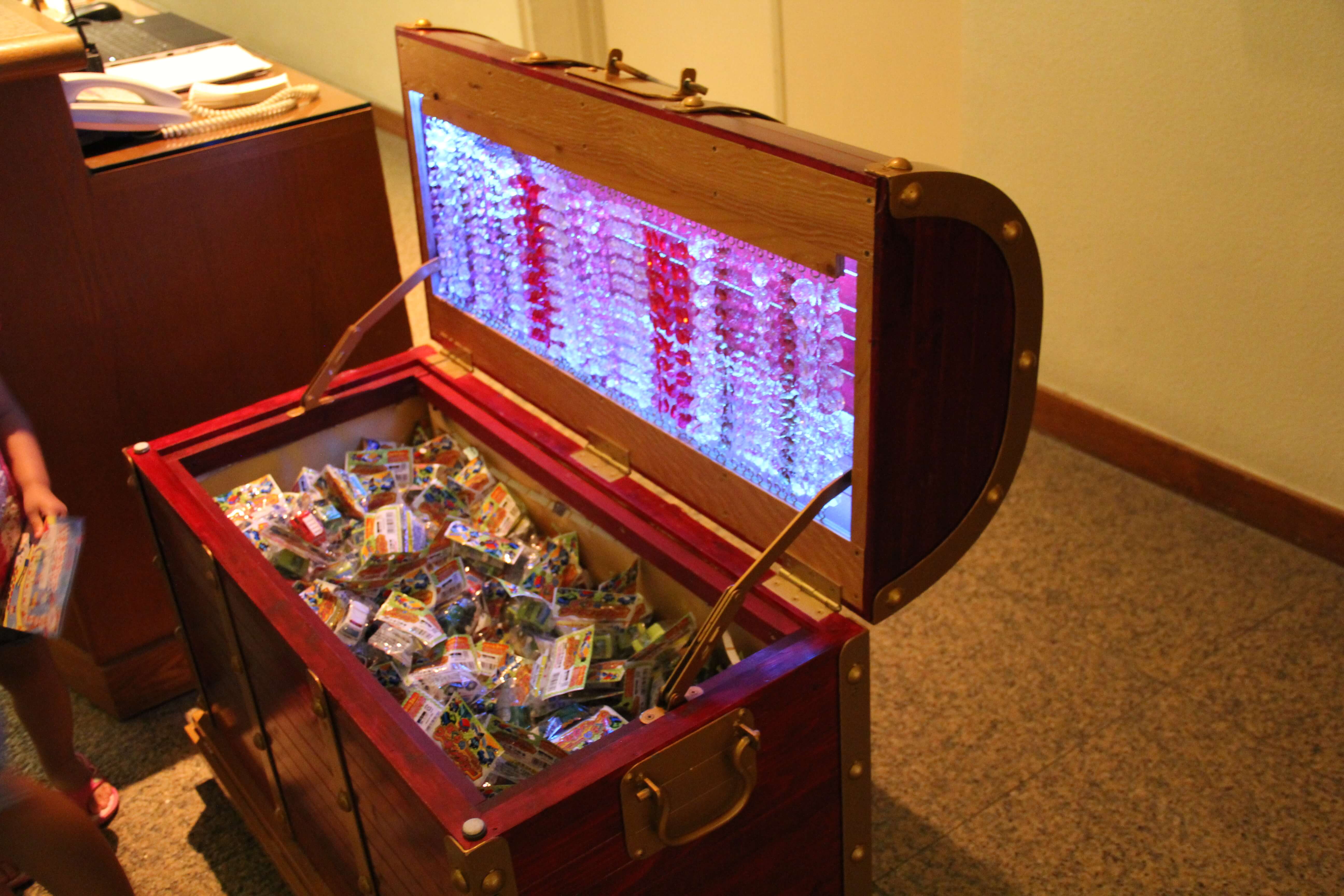 スタンプを一定の数集めると中間地点のご褒美としてベルデスクの横にある宝箱からお宝(おもちゃ)を1個もらうことができます。これが2回あります。