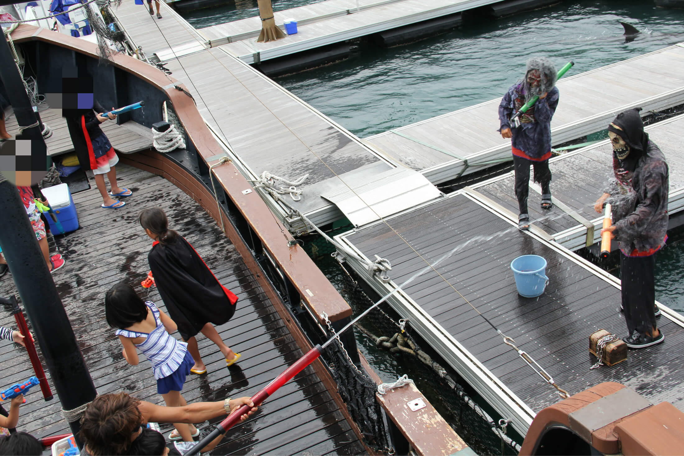 午前の部は地上での探検(謎解きやゲーム)+海上での海賊との戦い、午後の部は海上での海賊との戦いのみとなっています。
