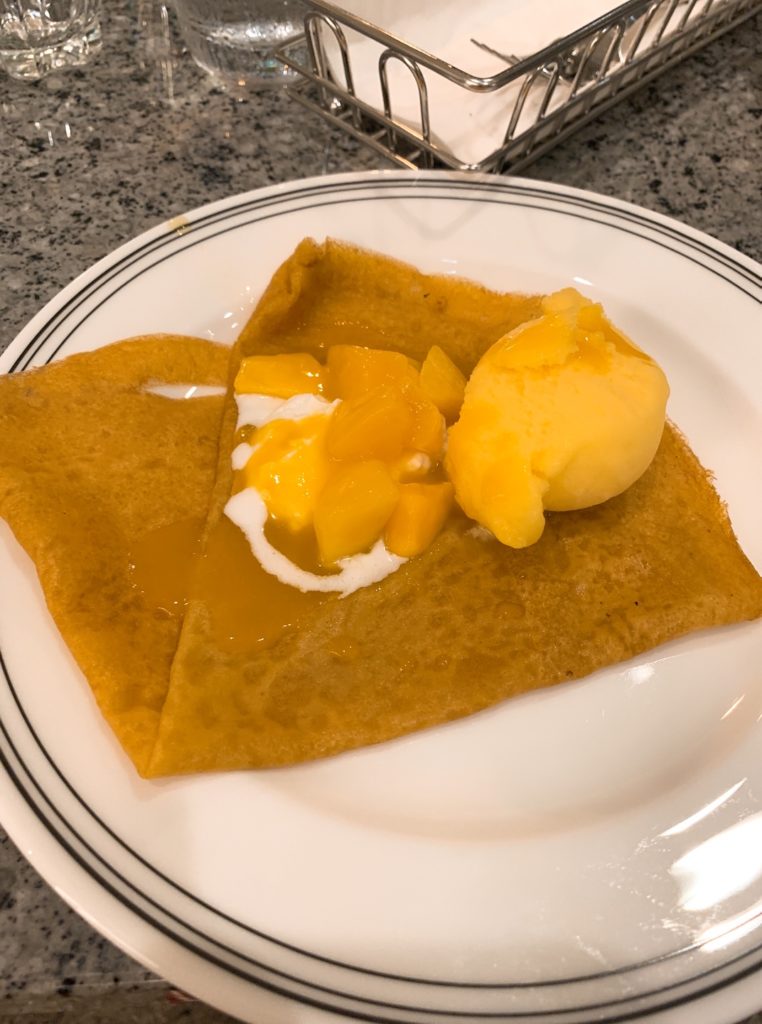 私はマンゴーにマンゴーシャーベットでマンゴー尽くしクレープとして頂きました(笑)