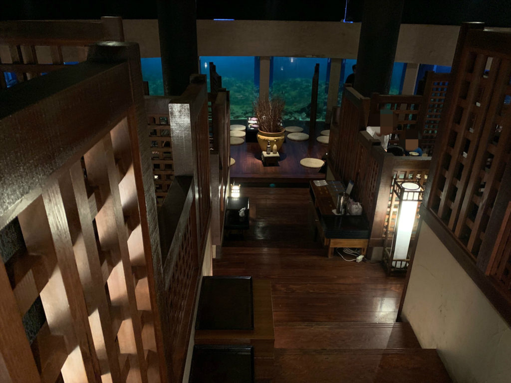 海上レストランですのでぱっと水槽が現れた瞬間海の中が見えているのではないかと錯覚してしまうほどです(笑)もちろん水槽です