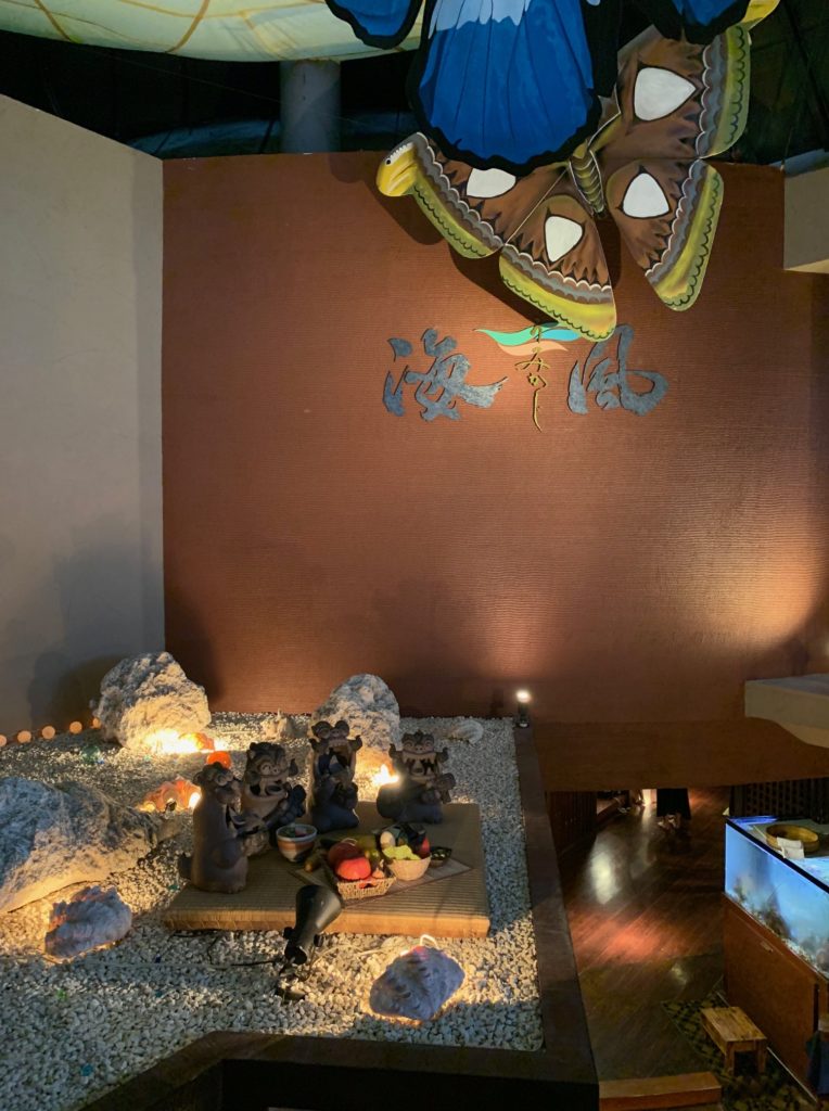 ルネッサンスリゾートオキナワ「海風」は珊瑚礁に突き出た桟橋の先にある海上レストランで、まるで海の中にいるような水槽の前で沖縄の食材の炭火焼や沖縄料理、泡盛を楽しむことができるおすすめのレストランです。「海風」のディナータイムの様子、フードやドリンクのメニュー、キッズメニュー、頂いたものとお会計を写真と共にご紹介します!