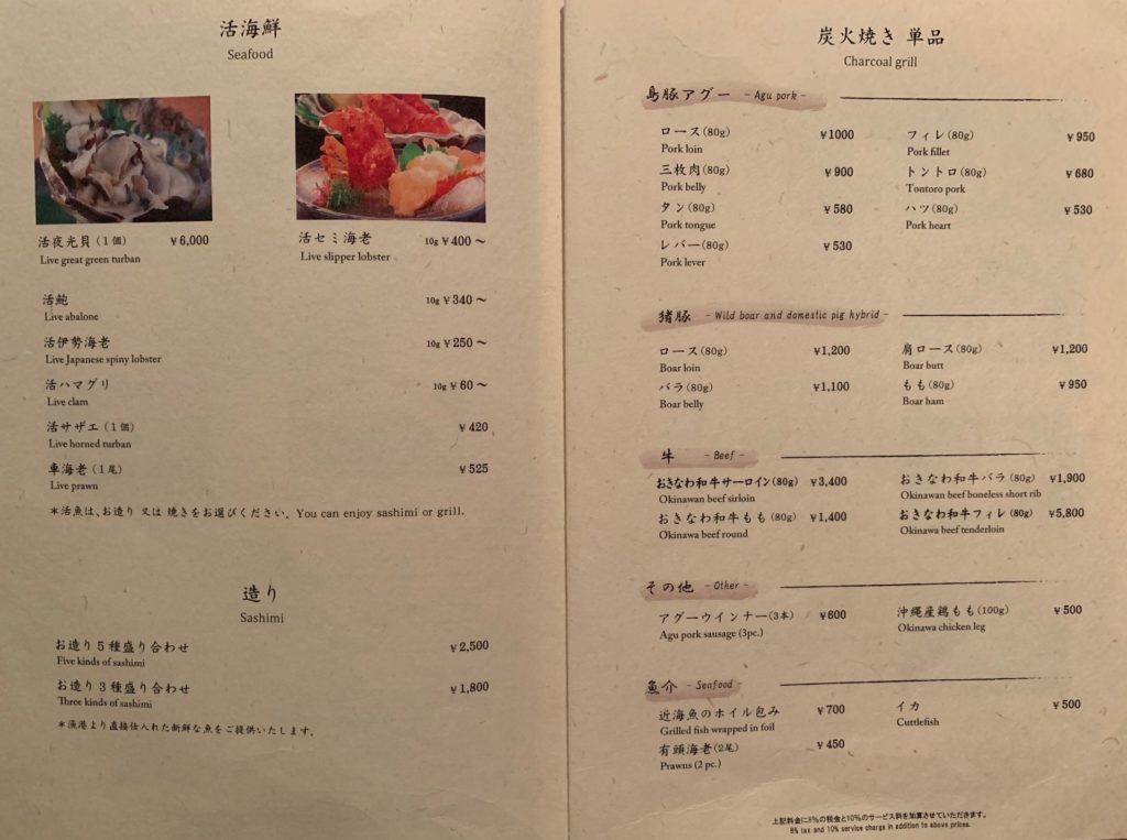 島豚アグーやおきなわ和牛、海鮮の炭火焼がメインのレストランですが、ジーマミー豆腐・ラフテー ・豆腐よう・海ぶどうなどの沖縄料理や沖縄各地から集めた13種の泡盛があり沖縄の食やお酒を楽しめるレストランです