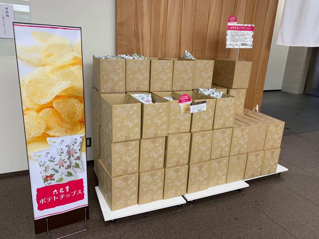 六花亭のポテトチップスはおなじみの花柄パッケージ