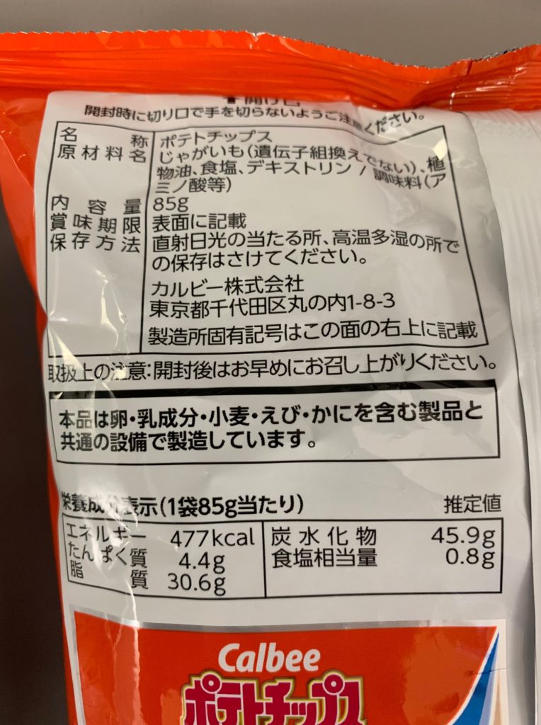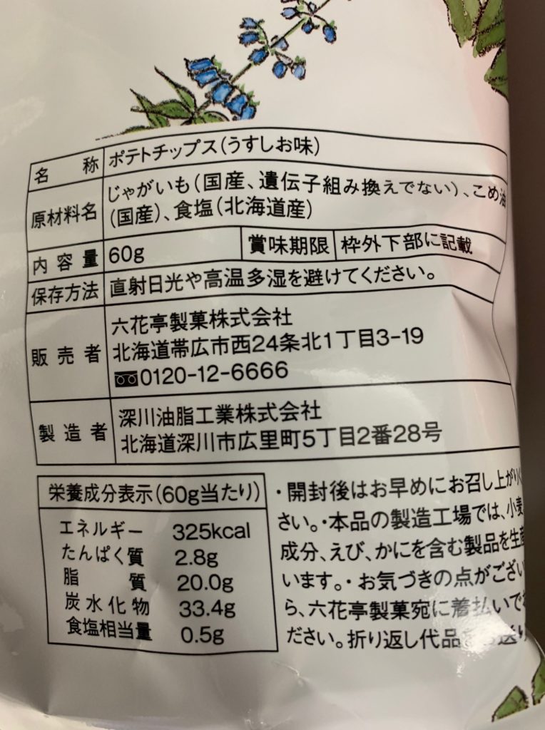 六花亭のポテチの方がカロリーも食塩も控えめとなっていますし、味付けは食塩のみとシンプルになっています。カロリーは油の違いによるものでしょうか。六花亭のポテチの方が素材の風味を生かしているということになるのでしょう。
