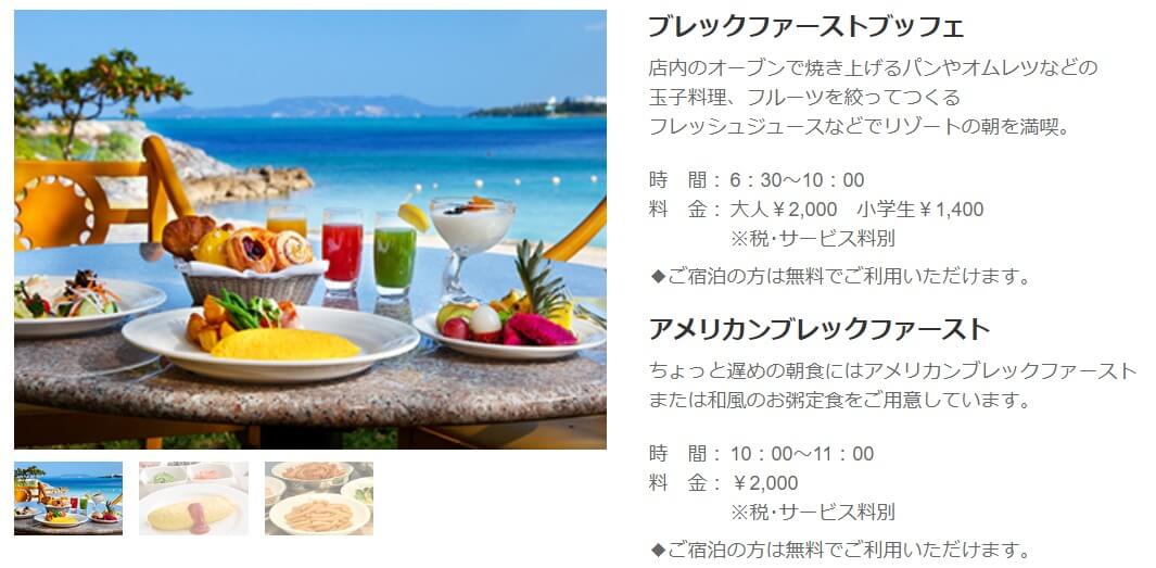 ルネッサンスリゾートオキナワは基本的に朝食は無料です