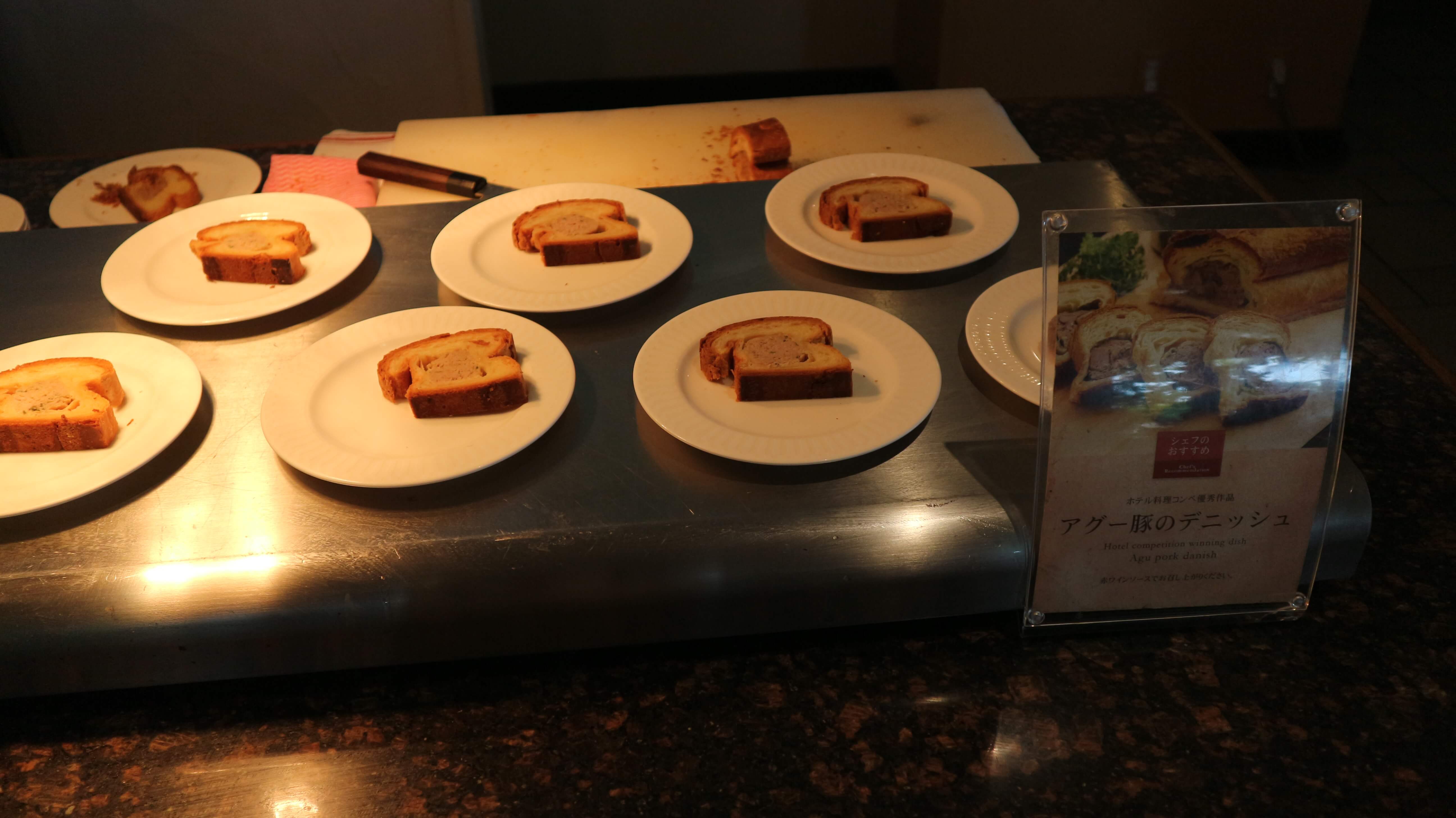 ランチの目玉メニューはあぐー豚のデニッシュやソーセージのようでした。