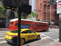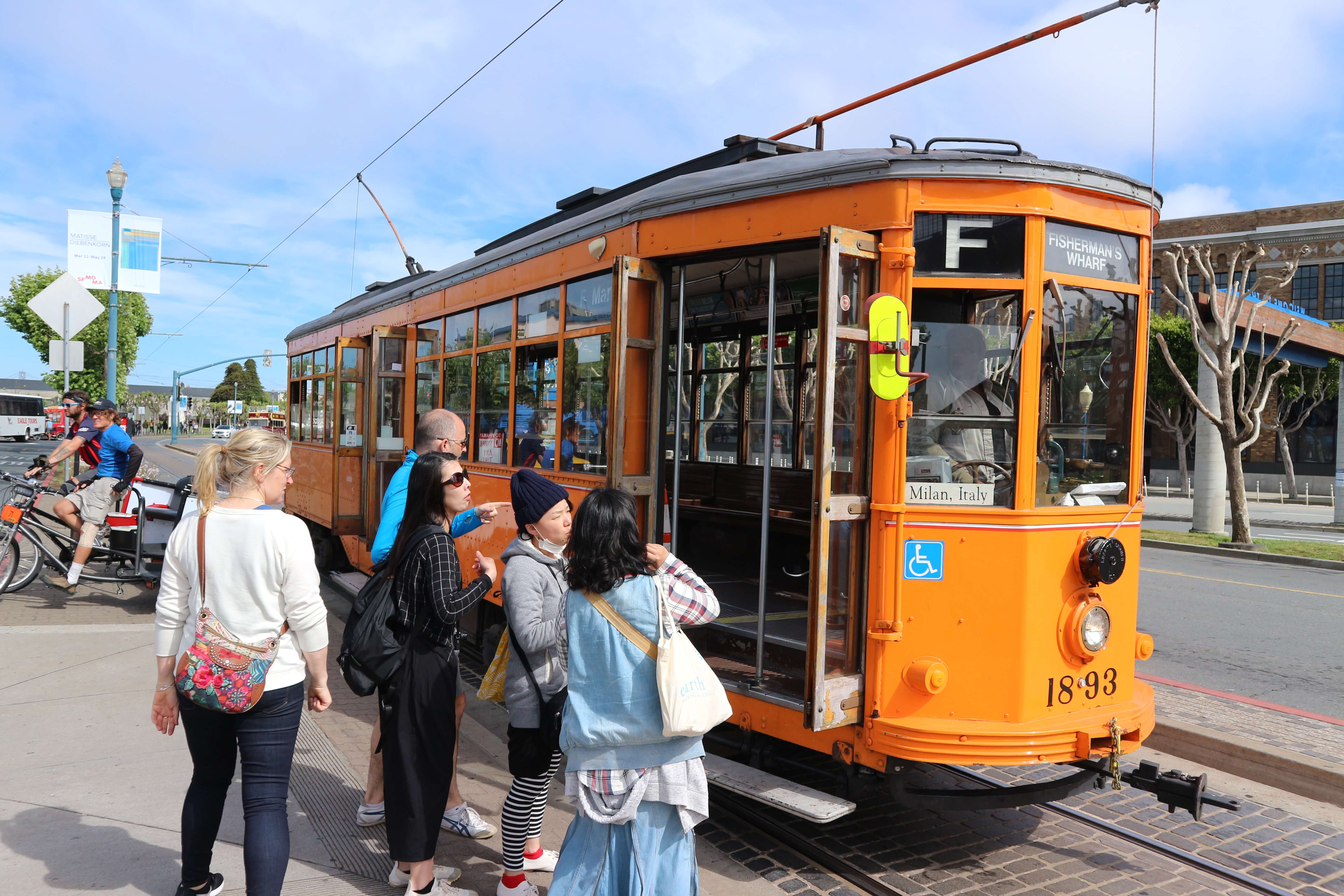 その後早速Muni Passportを使って、Muni Metro (ミュニメトロ)Fラインでフィッシャーマンズワーフに向かいます。こちらのFラインはMetroと言いながらずっと地上を走っている上にマーケットストリート→フェリービルディング→アルカトラズ島ツアー発着所であるピア33→ピア39→フィッシャーマンズワーフと見どころを結んでいて街並みを見ながら地理も確認できて便利です。