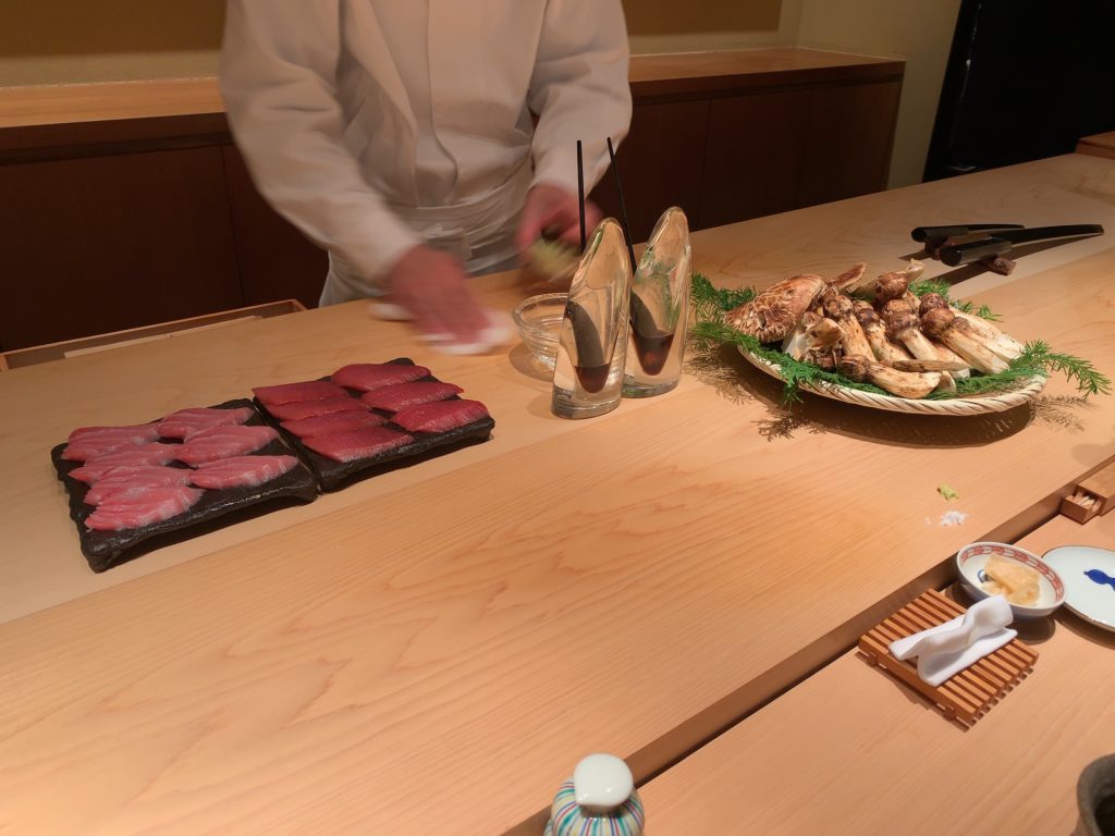 ここで目の前に中トロ、大トロと松茸が!テンションが高まってきます!