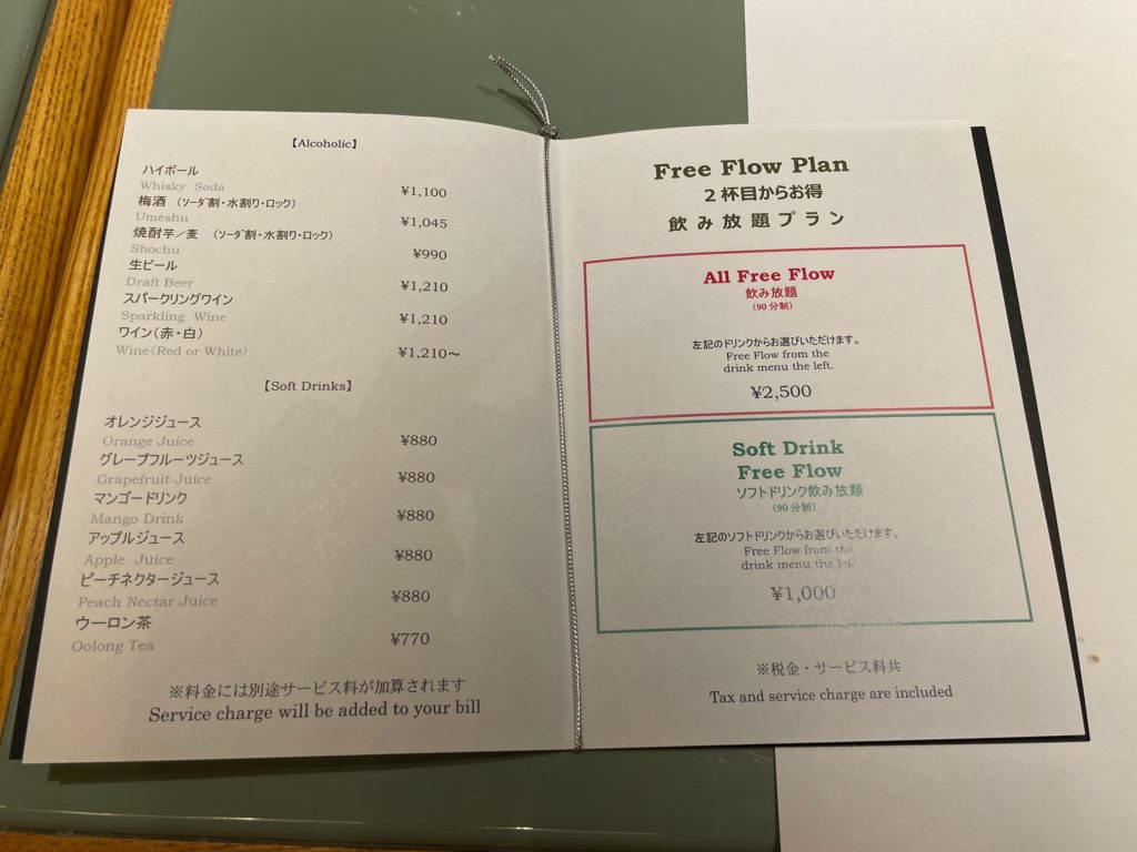 下記ドリンクメニューのフリードリンクメニューからお選びいただけます。