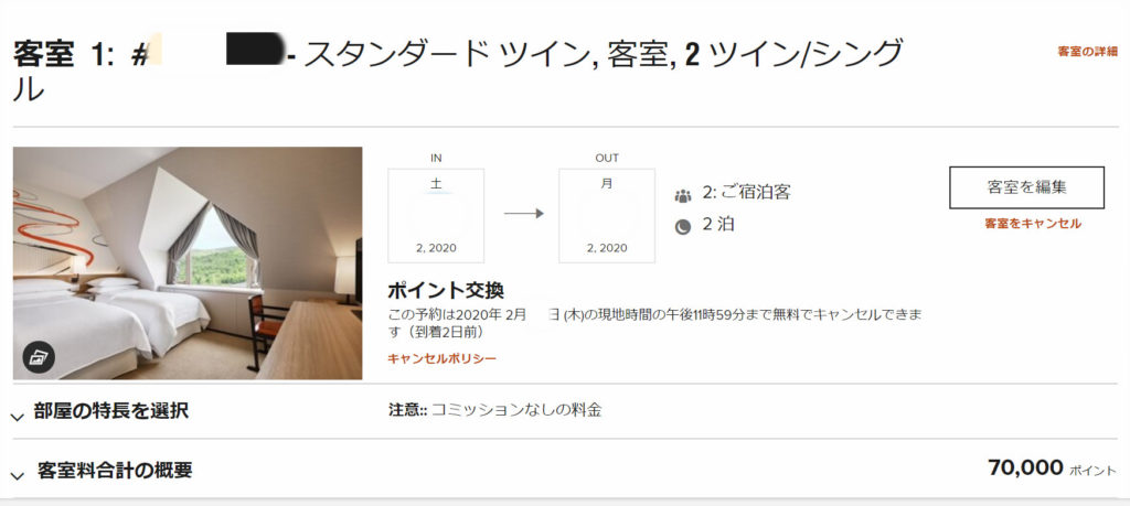 シェラトン北海道キロロリゾートは小学生まで添い寝が無料です。今回はポイント予約でしたのでスタンダードツインの部屋が予約されていました。
