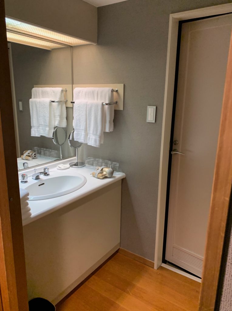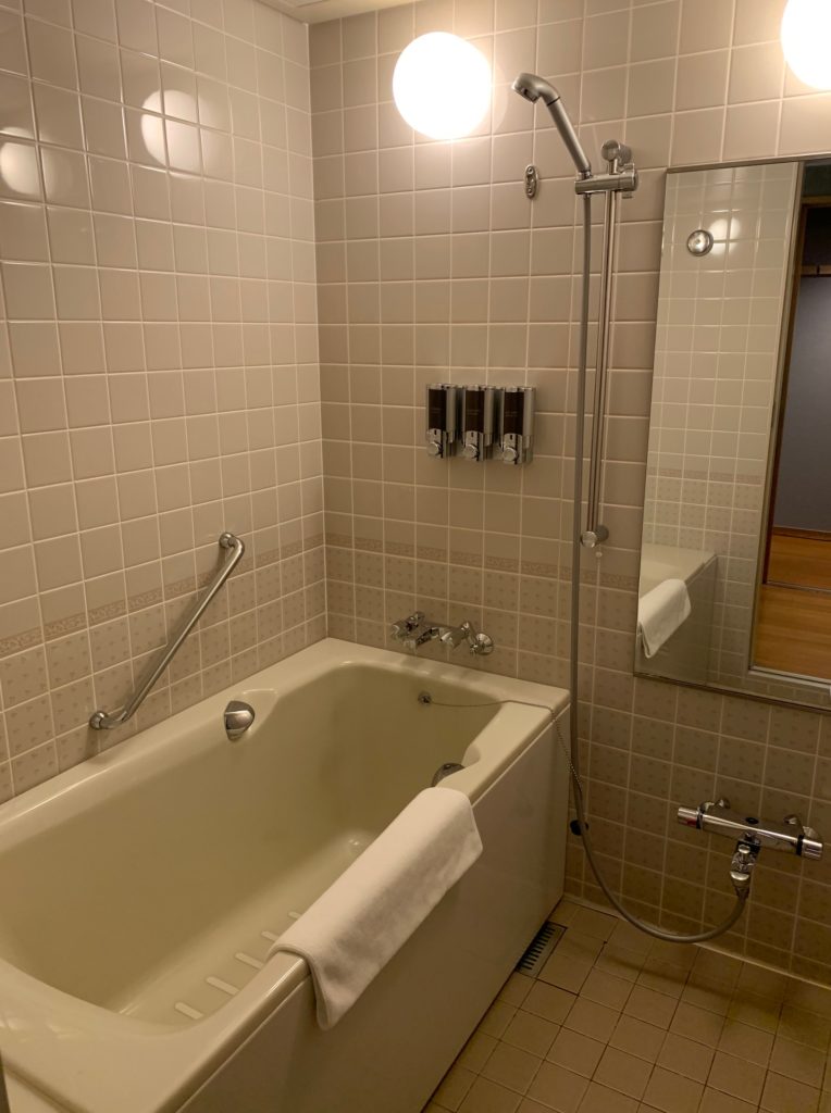 手前の扉は浴室になります。洗い場もあり広さはまずまずですが、私はマウンテンセンターの「ときわ湯」を利用しましたので部屋のお風呂は使いませんでした。