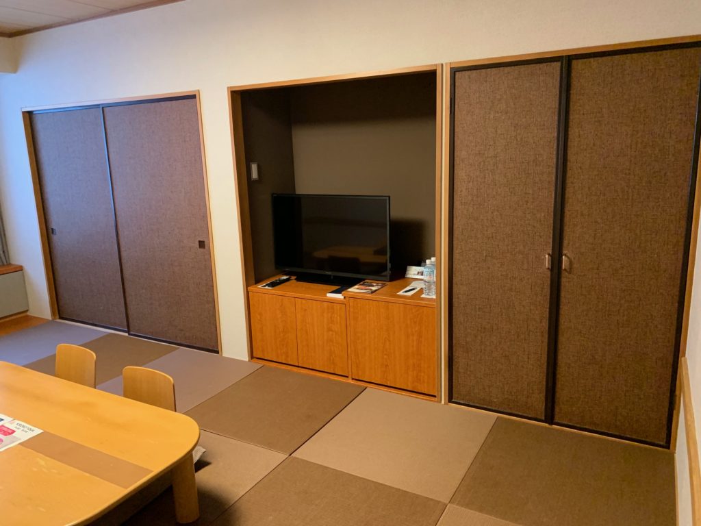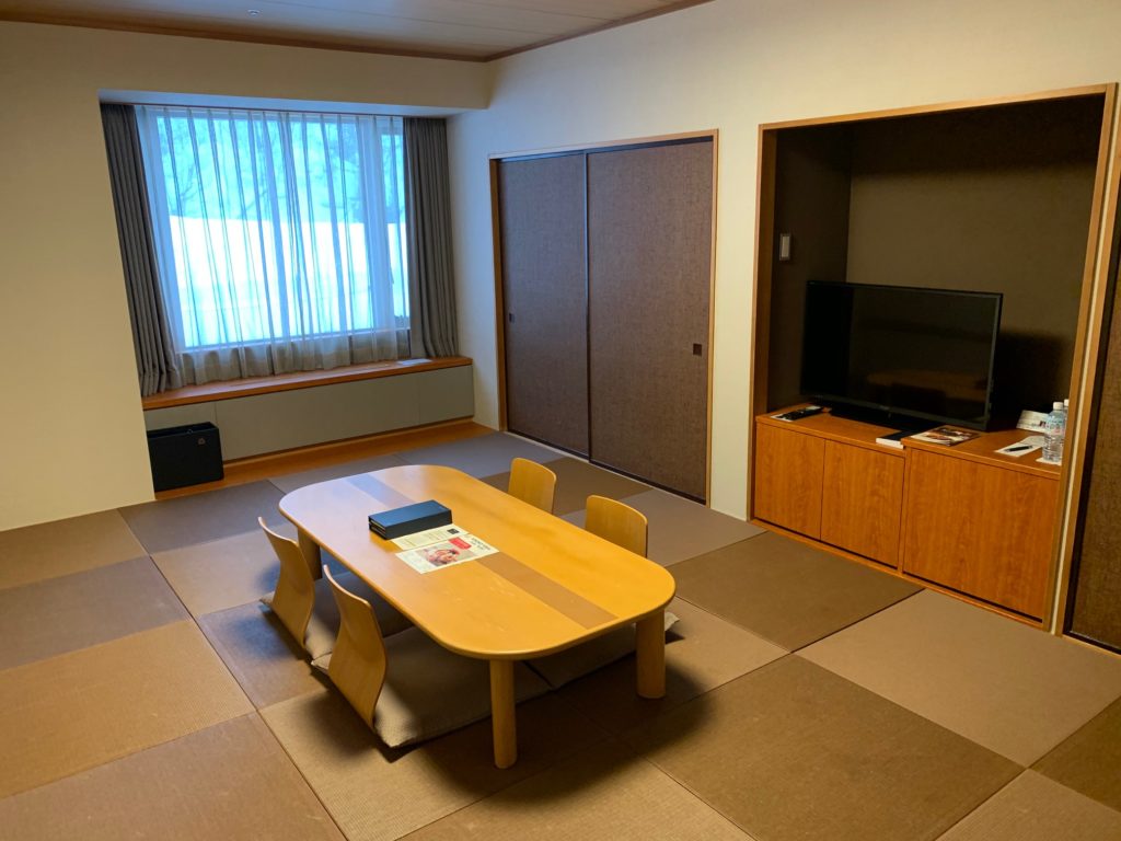 キロロスノーワールドのゲレンデの目の前にあるシェラトン北海道キロロリゾートの客室の種類、それぞれの客室の面積や値段をまとめ、和室室内の様子をご紹介します。10畳相当と比較的広く、子連れで家族で泊まるには洋室よりいいかもしれません。経年劣化が目立ちますが何と言ってもゲレンデが目の前でスキーするには利便性が最高です。
