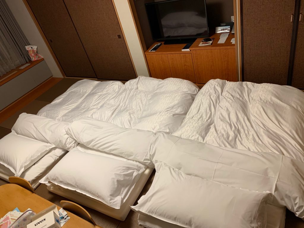 チェックイン当日マリオットのホームページ上はプレミアムデラックスツインに空きがあったのですがそちらへのアップグレードは不可とのことでした。いろいろお話しているうちに和室ならアップグレード可能で、エキストラベッド(布団)代をお支払いすることとなりました。
