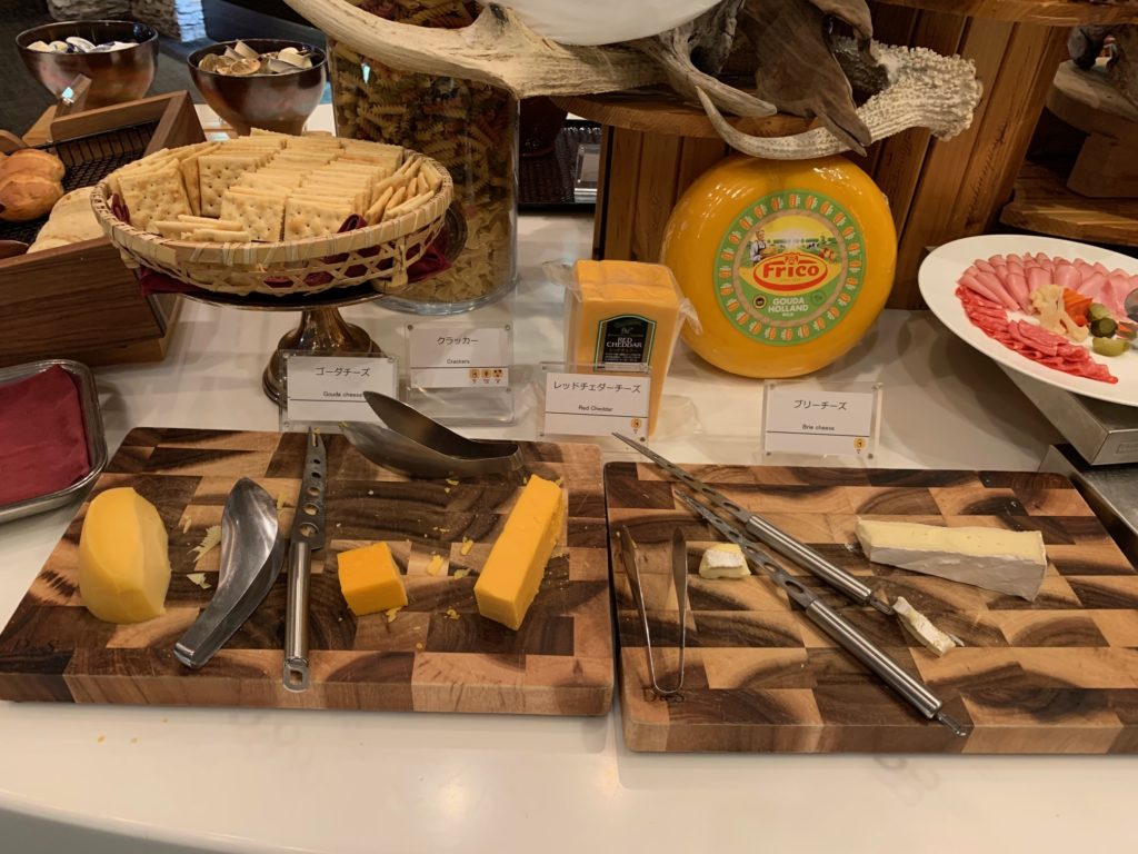 ゴーダチーズ、レッドチェダーチーズ、ブリーチーズ、クラッカー