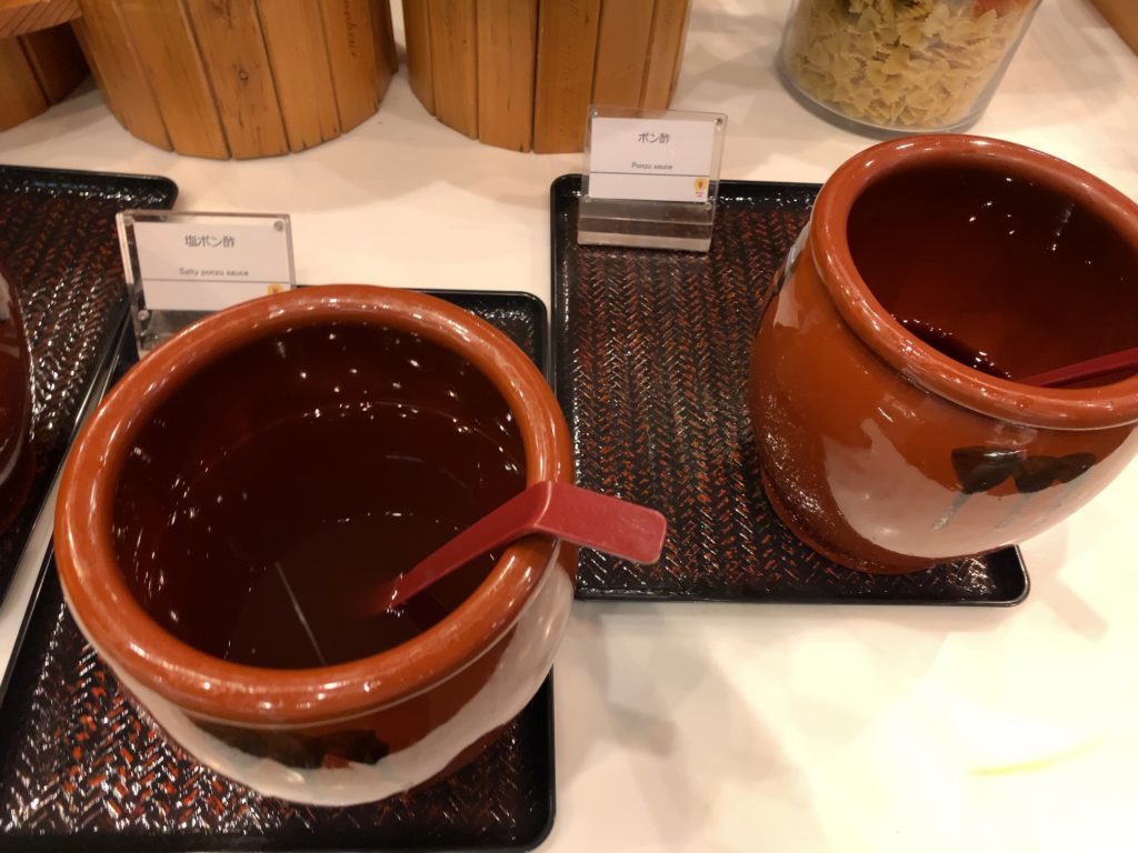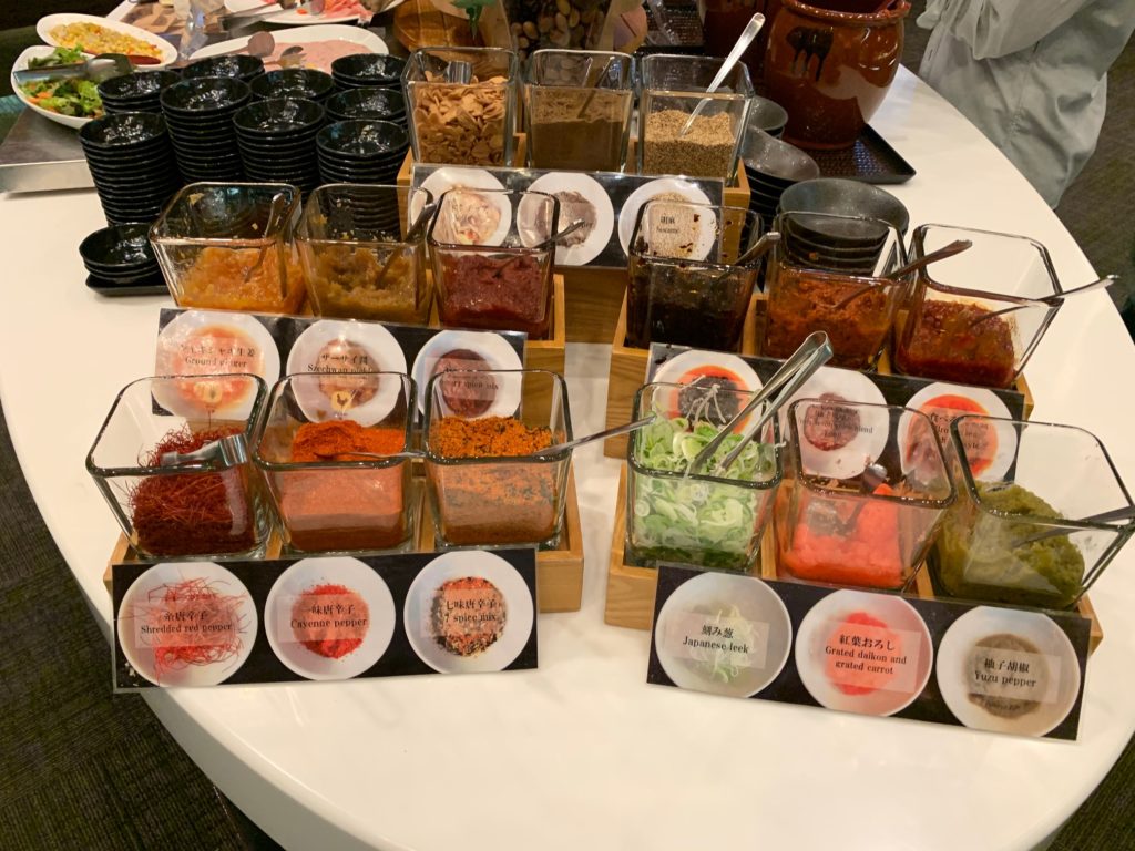 出汁は2種類だけ、そのうち1つは昆布だしで飽きるのではないかと心配しましたが、ブッフェコーナーに味変調味料が豊富にあり飽きることなく食べられますのでご心配なく!