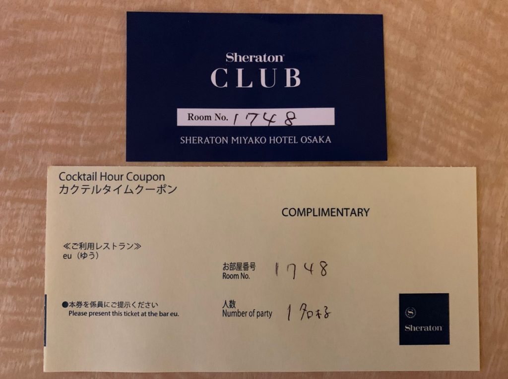 シェラトン都ホテル大阪ではチェックイン時に以下のようなチケットをもらえます。