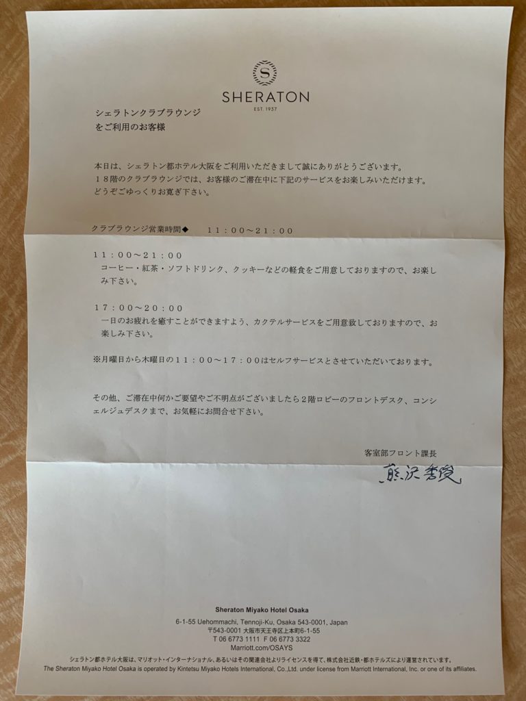 シェラトン都ホテル大阪のプラチナ会員特典で利用できる施設をチェックして行きましょう!