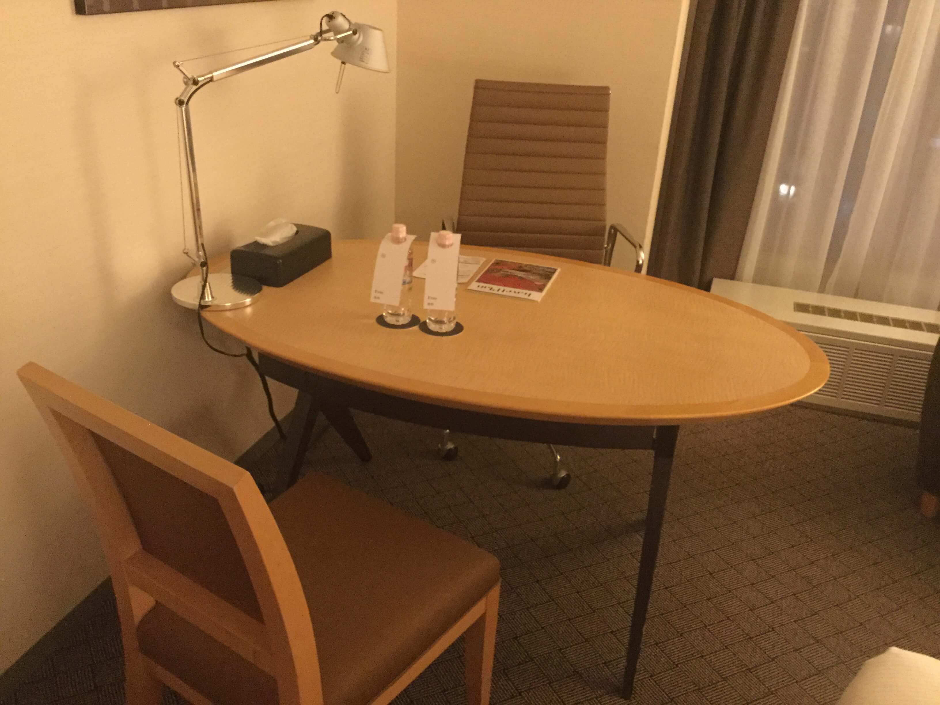 テーブルは広くて、デスクライトもあり、コンセントも設けられていて、出張での仕事や勉強にも使いやすいです。